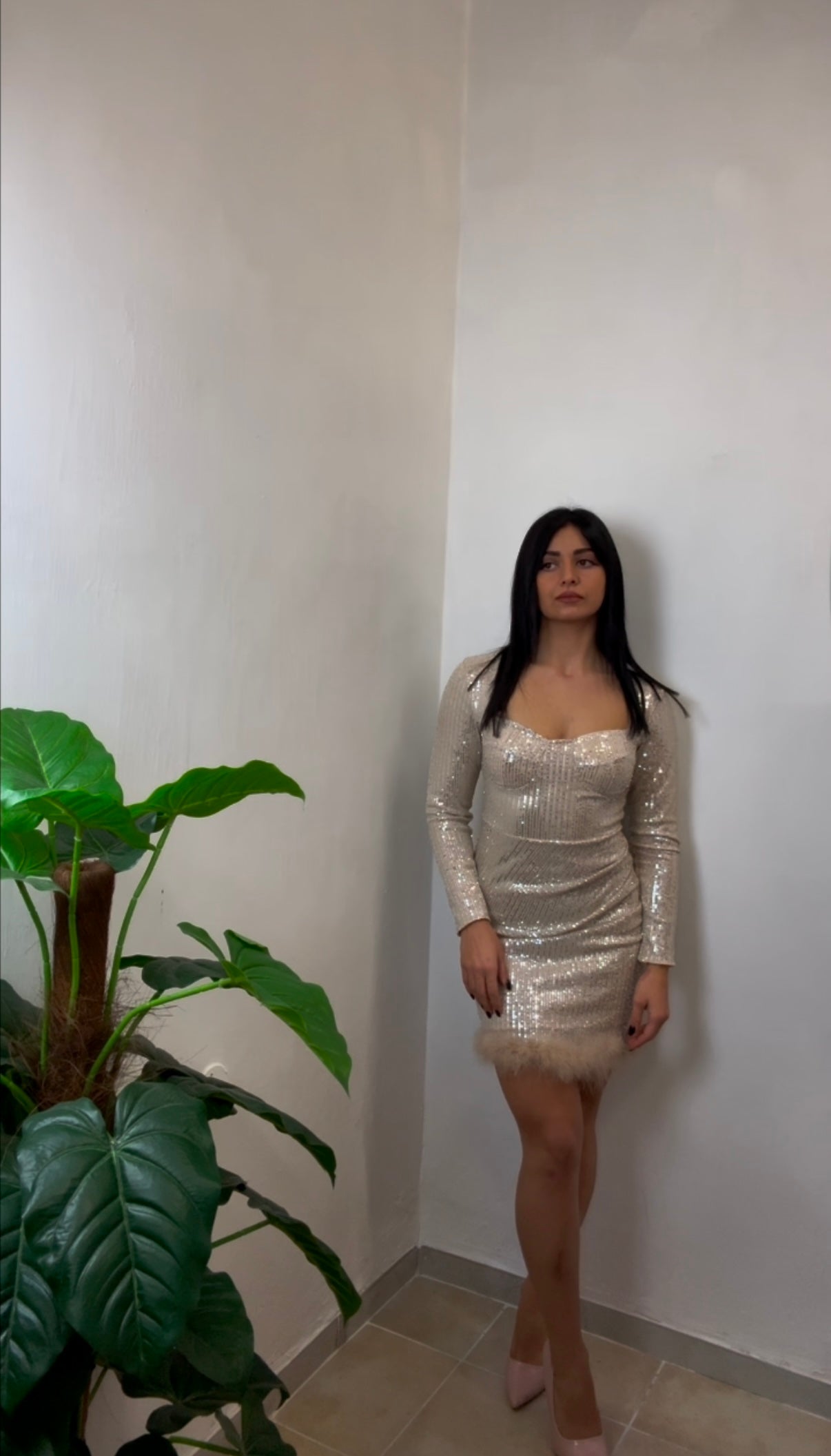 Abito champagne in taglia unica, con vestibilità adatta dalla XS alla M. Il tessuto leggero valorizza la figura con una linea elegante e femminile. La tonalità champagne dona luminosità al look, rendendolo ideale per cerimonie, eventi serali o occasioni speciali.