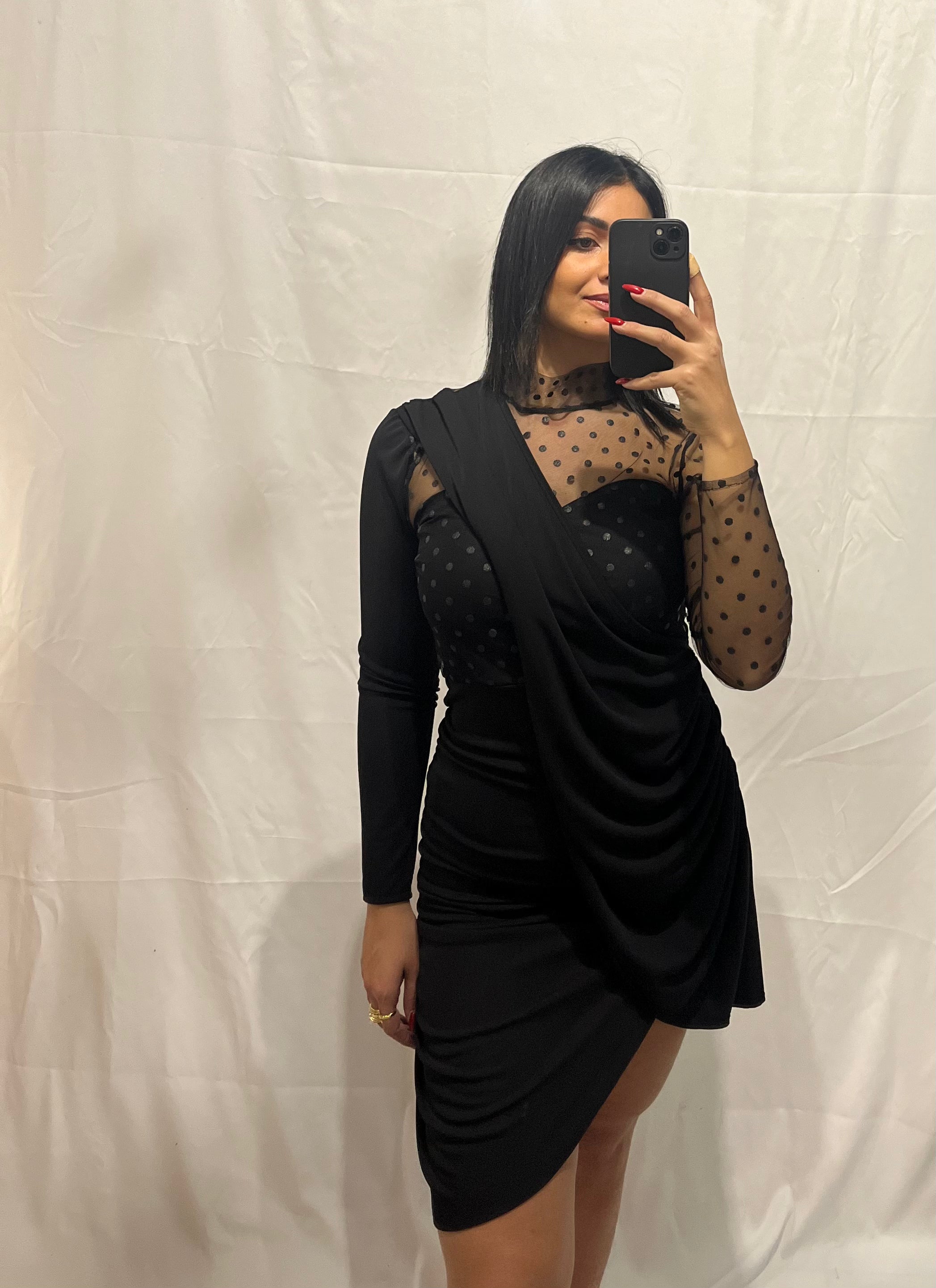 L'Abito con scollo a cuore nero è un classico intramontabile che esalta la femminilità.