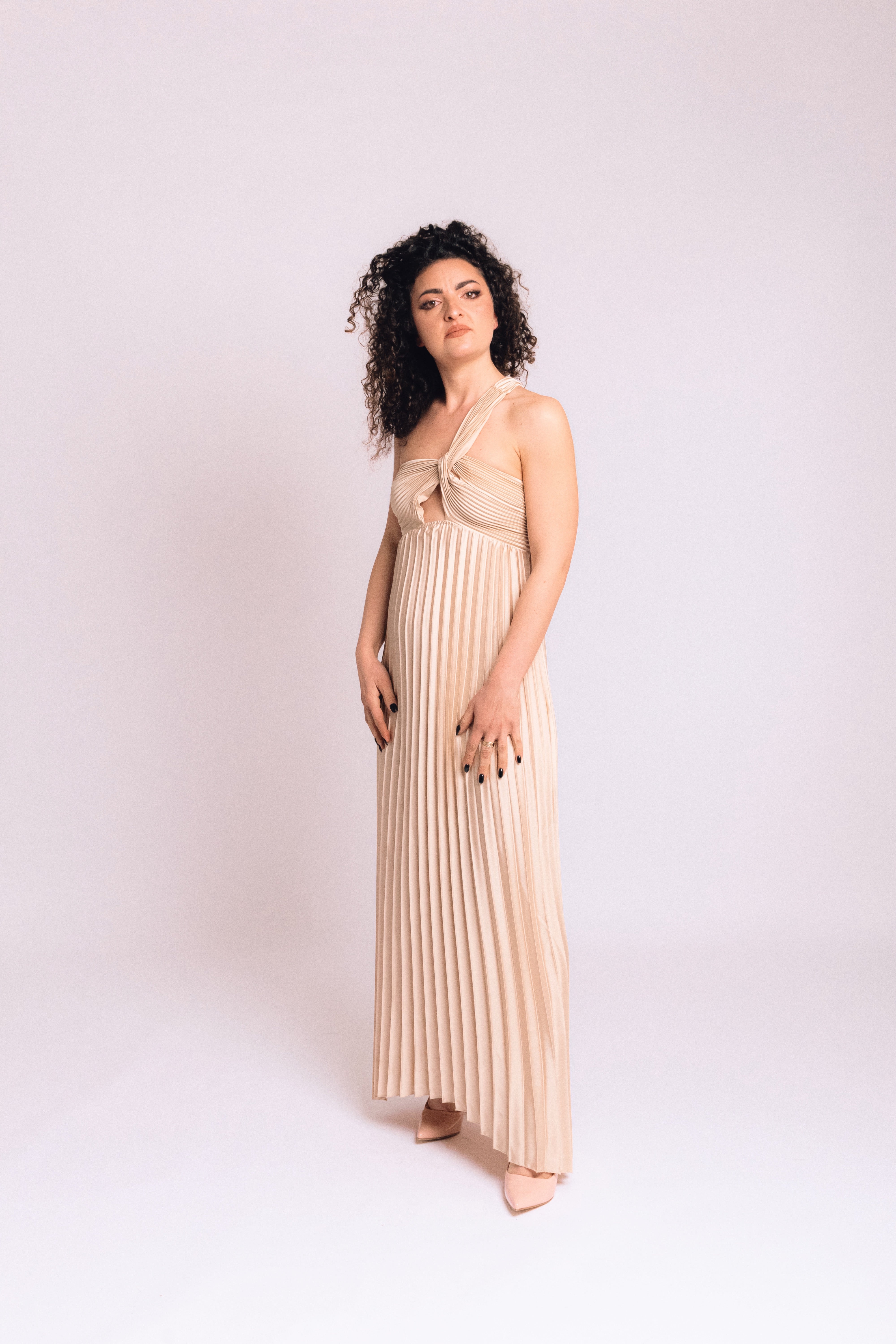 Linee fluide e tessuto leggero per un abito adatto a ogni stagione e occasione, dal quotidiano agli eventi speciali.