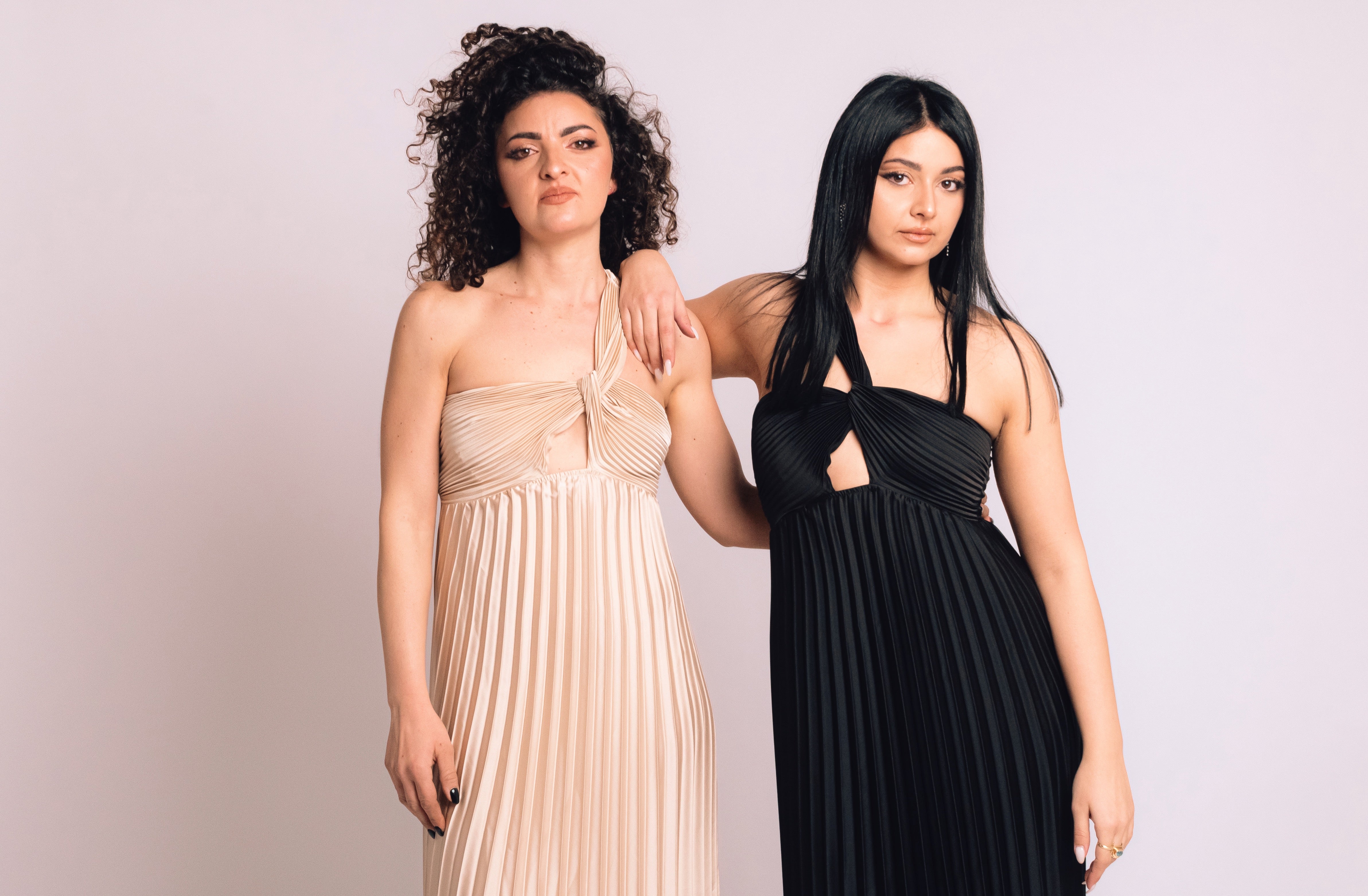 Abito Eternity in beige, nero e blu royal. Un classico moderno che unisce raffinatezza e comfort.