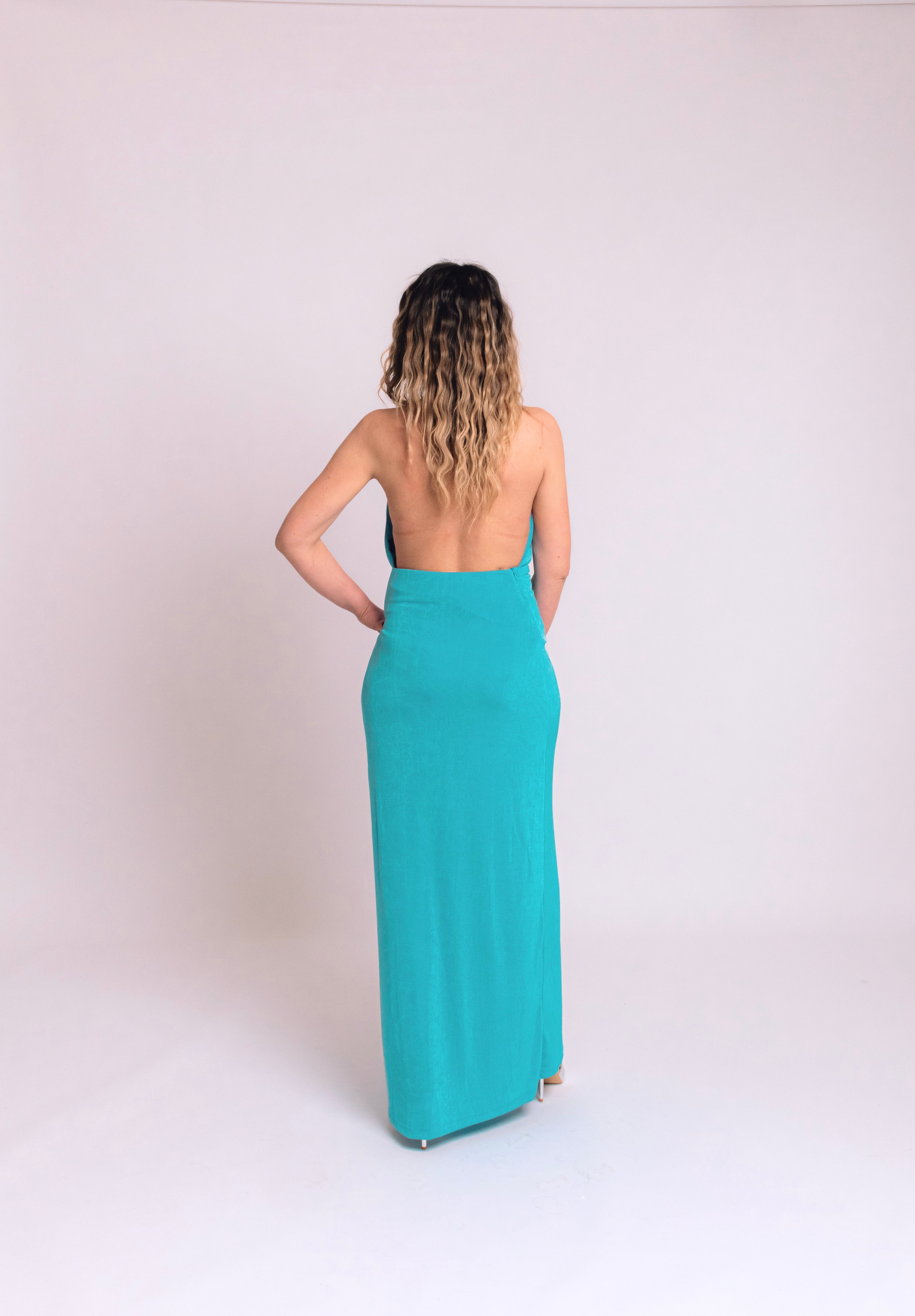 Abito morbido con schiena scoperta, disponibile in nero e celeste, taglia SM. Pensato per chi ama sentirsi libera, elegante e irresistibile.