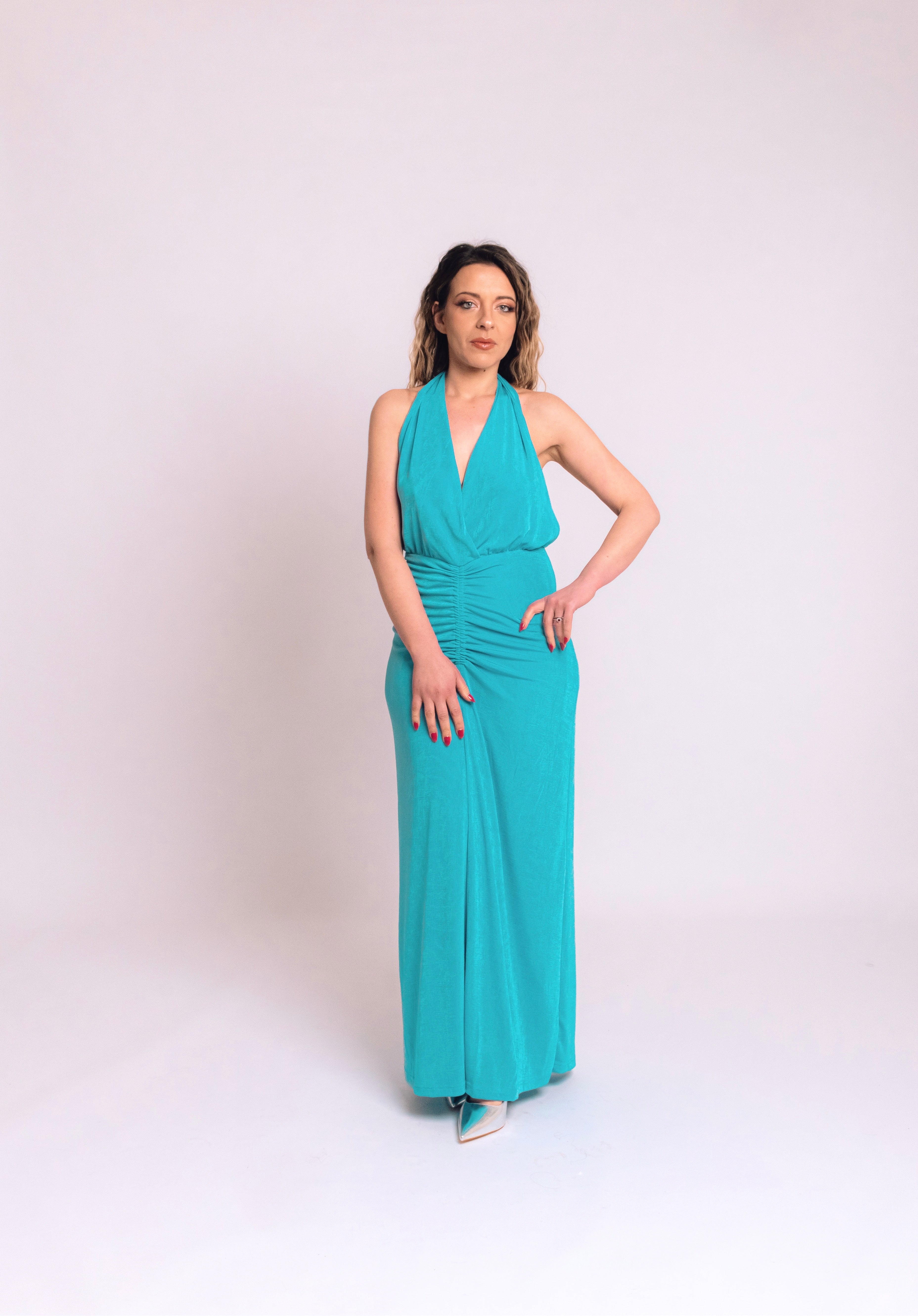 Tessuto leggero e scollo profondo sulla schiena per un look che conquista senza sforzo. Perfetto per serate, eventi o vacanze estive.