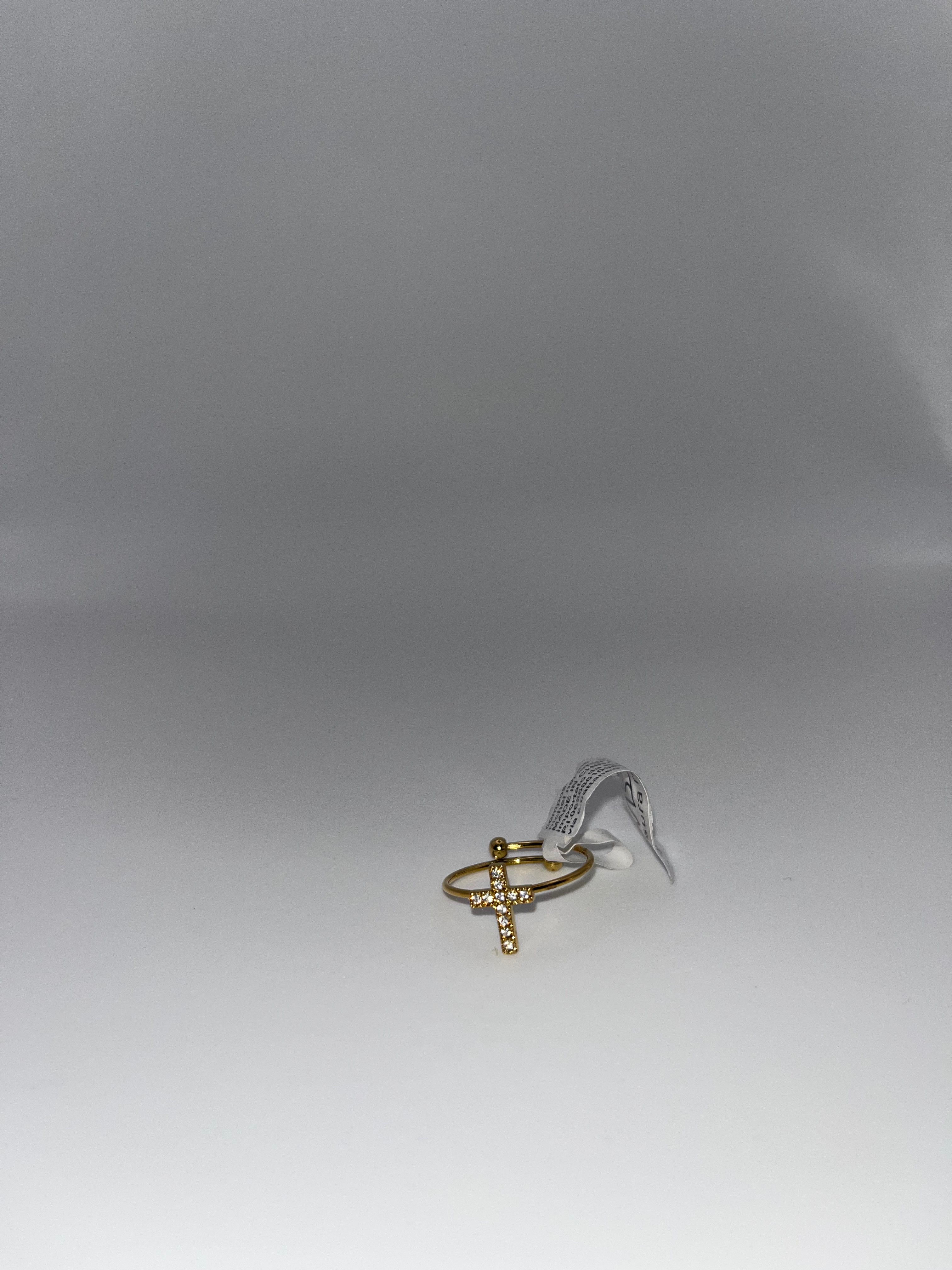 Anello Croce e Strass Dorati, regolabile e luminoso.