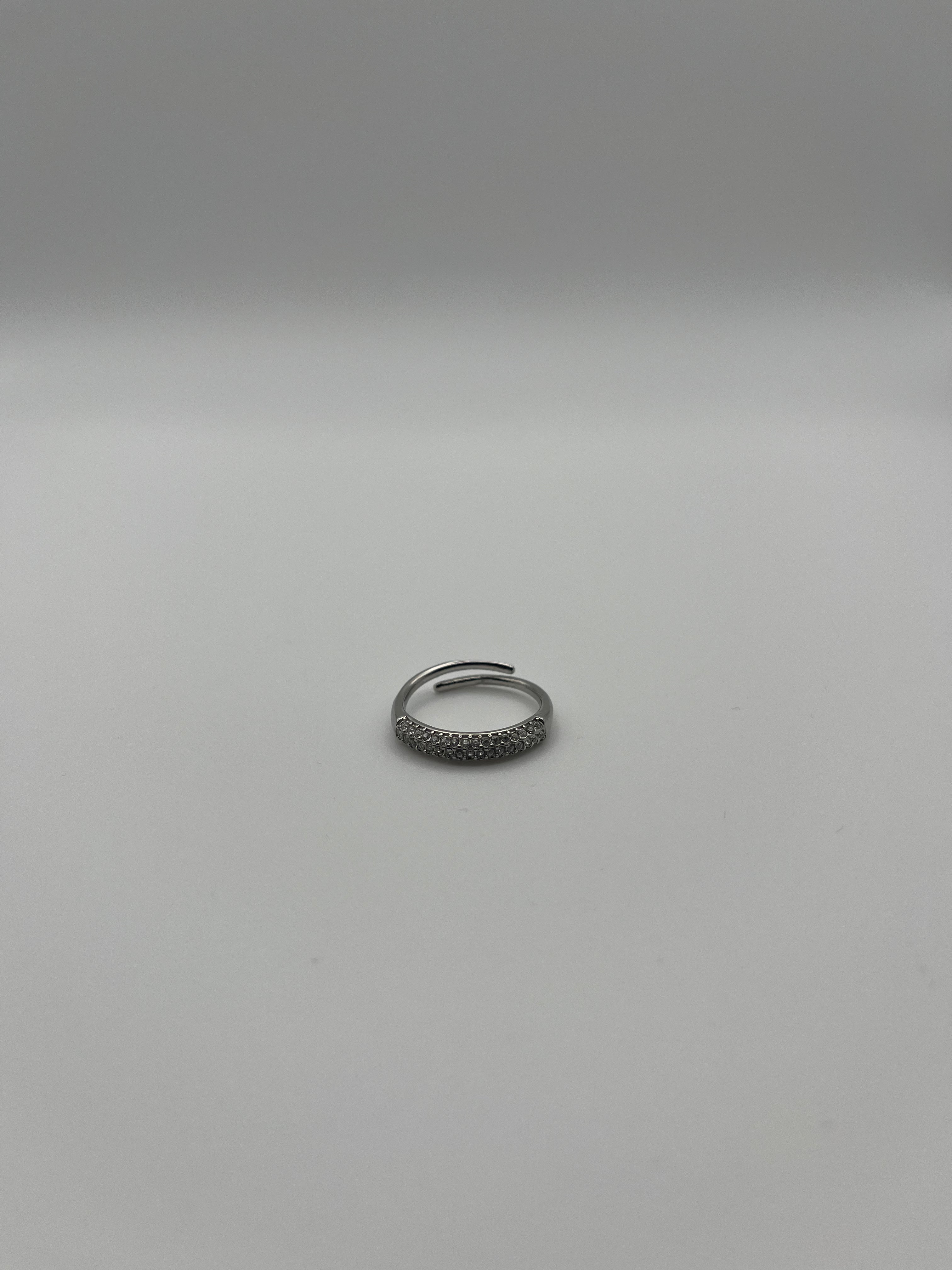 Anello regolabile Toga in finitura argento, realizzato in acciaio con nichel nei limiti consentiti. Un accessorio dal design moderno e lineare, ispirato alla semplicità elegante delle forme architettoniche classiche.