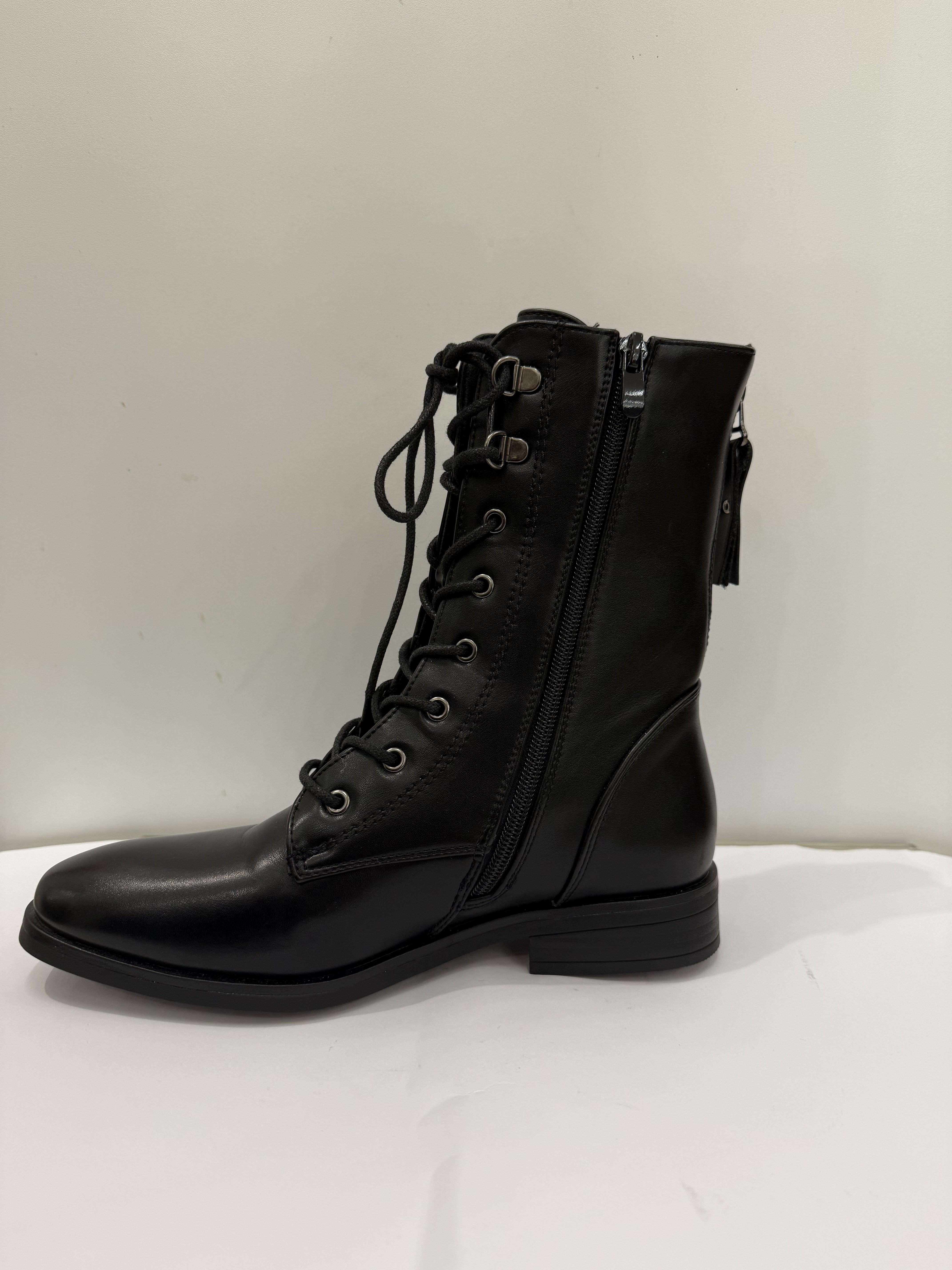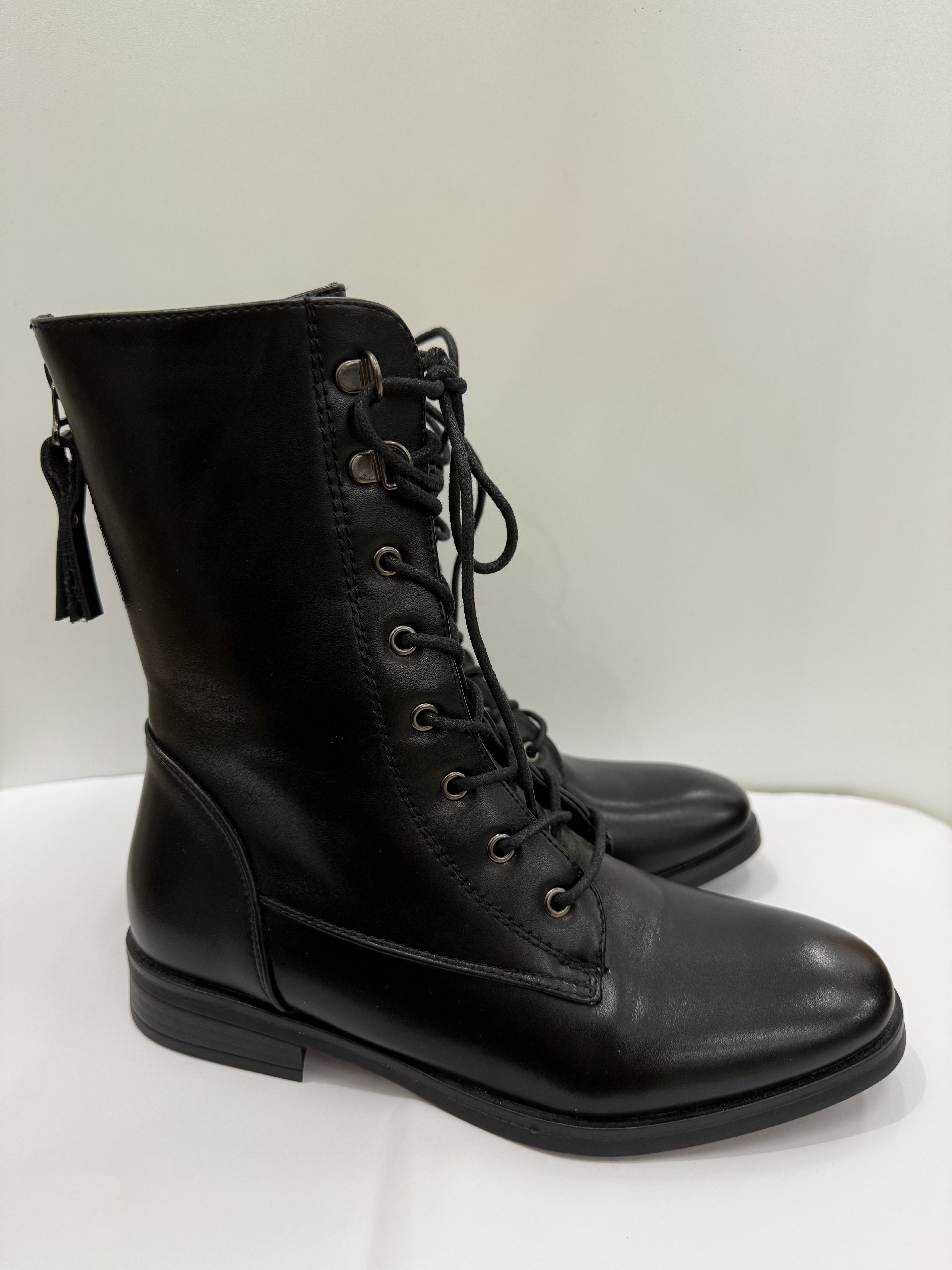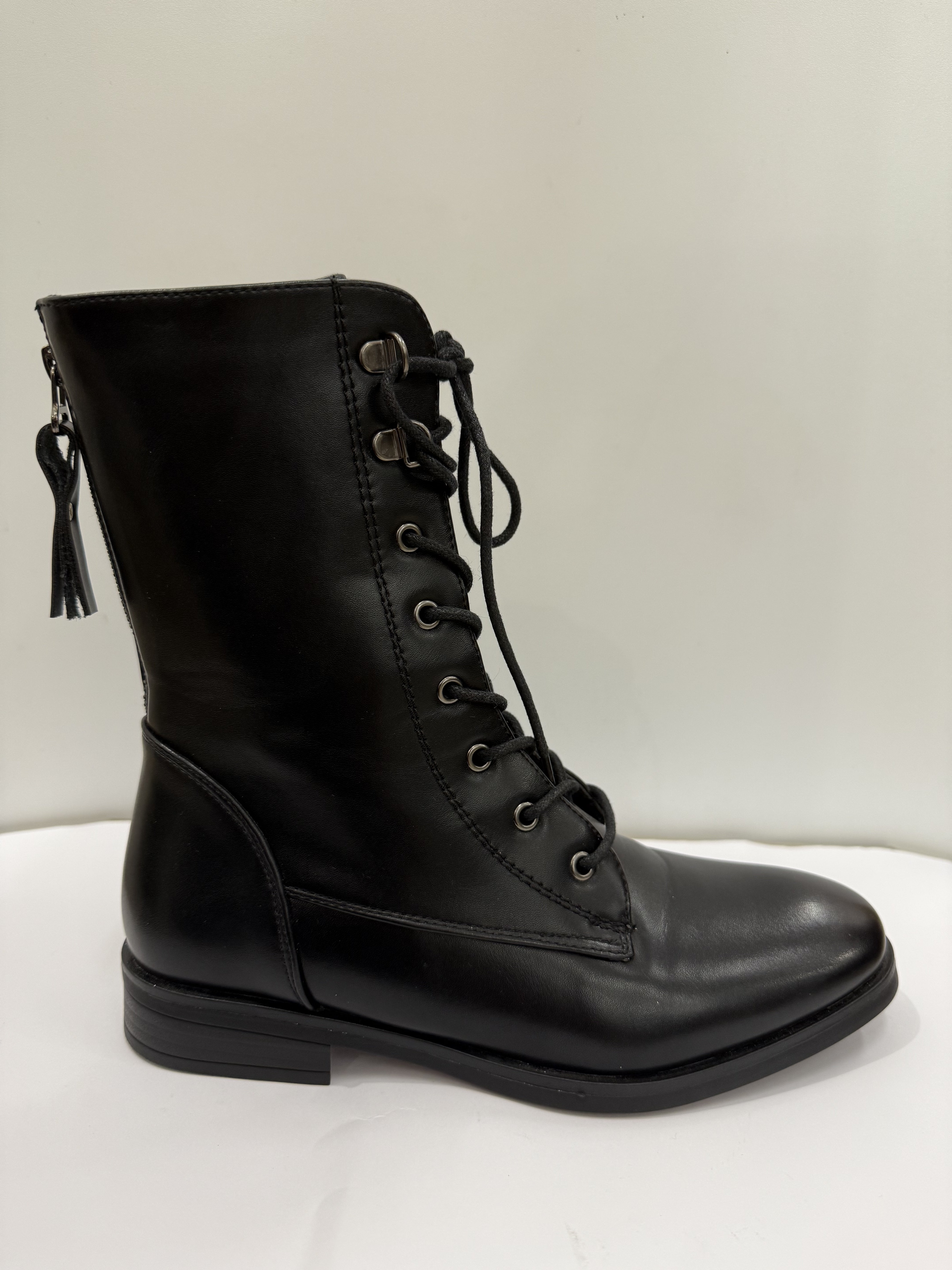 Anfibio alto in similpelle nera, perfetto per ogni outfit.