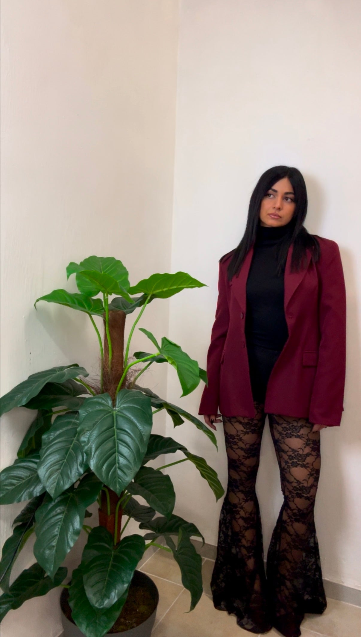 Valorizza la tua figura con il blazer sfiancato in tono bordeaux intenso, un capo senza tempo che dona carattere ad ogni outfit.