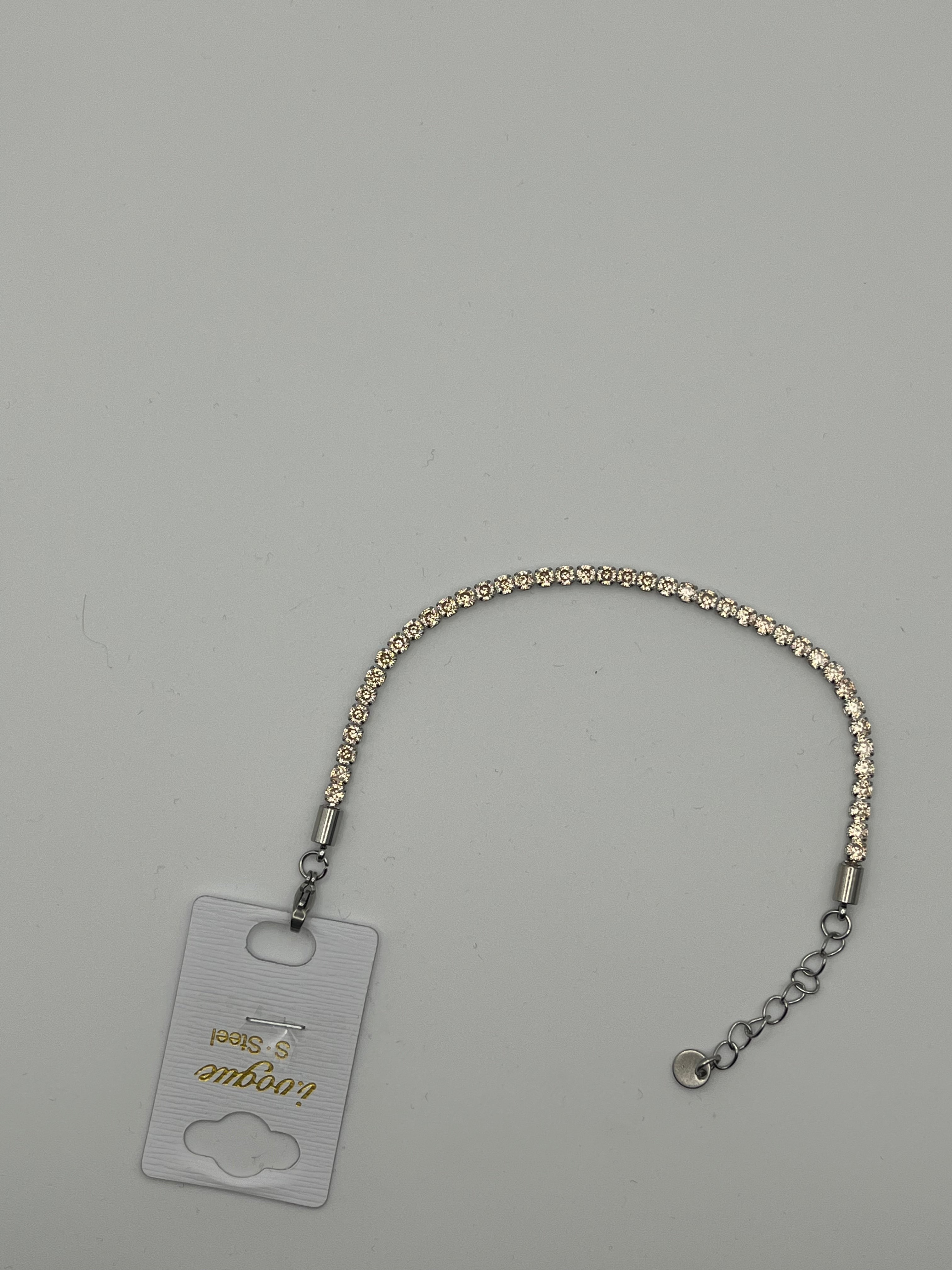Bracciale tennis con cristalli color panna e catena in finitura argento, realizzato in acciaio con nichel nei limiti consentiti. Un gioiello sobrio e luminoso, perfetto per chi ama i dettagli delicati ma d’effetto.