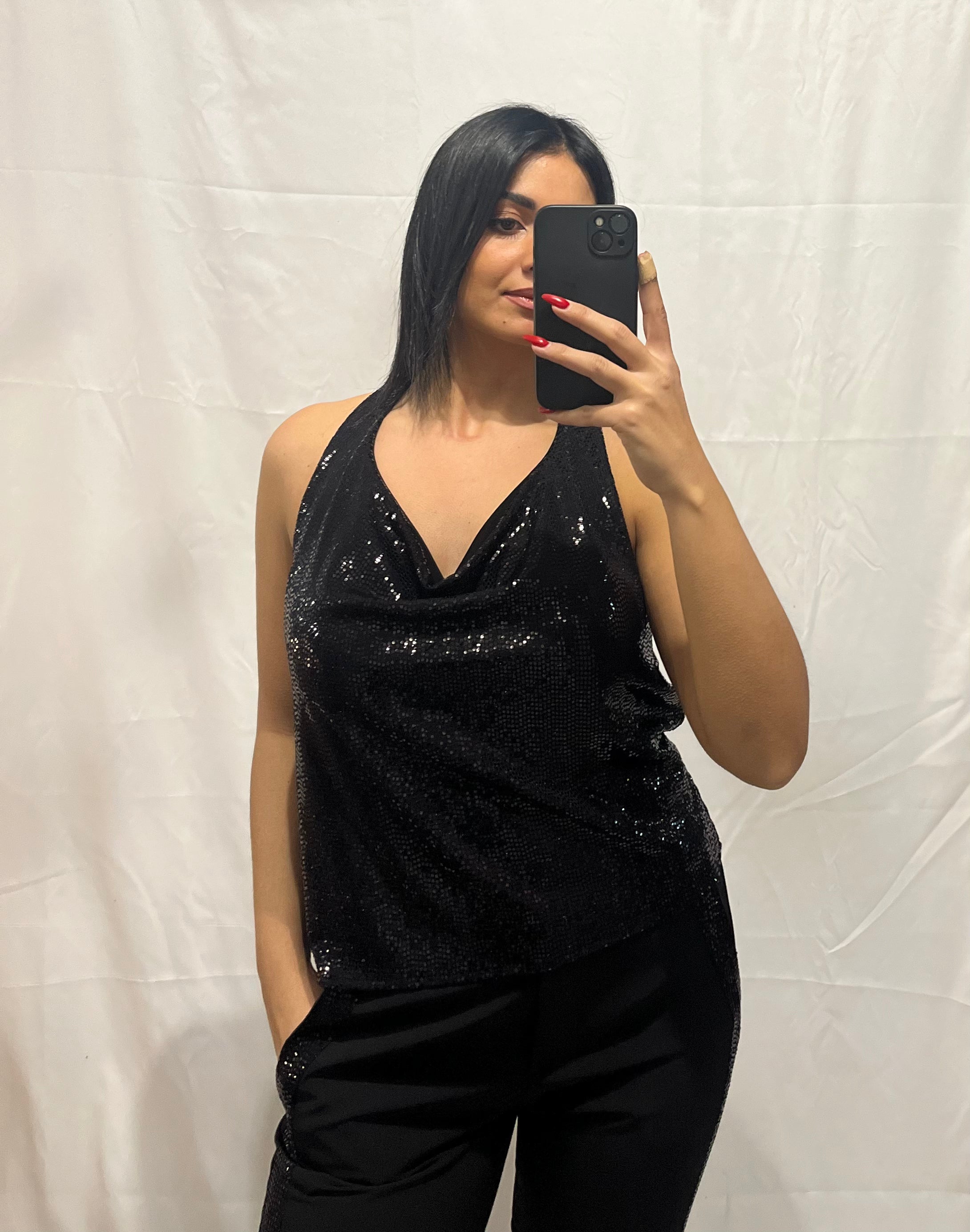 La Canotta Berlino nera con paillettes è perfetta per un look scintillante.