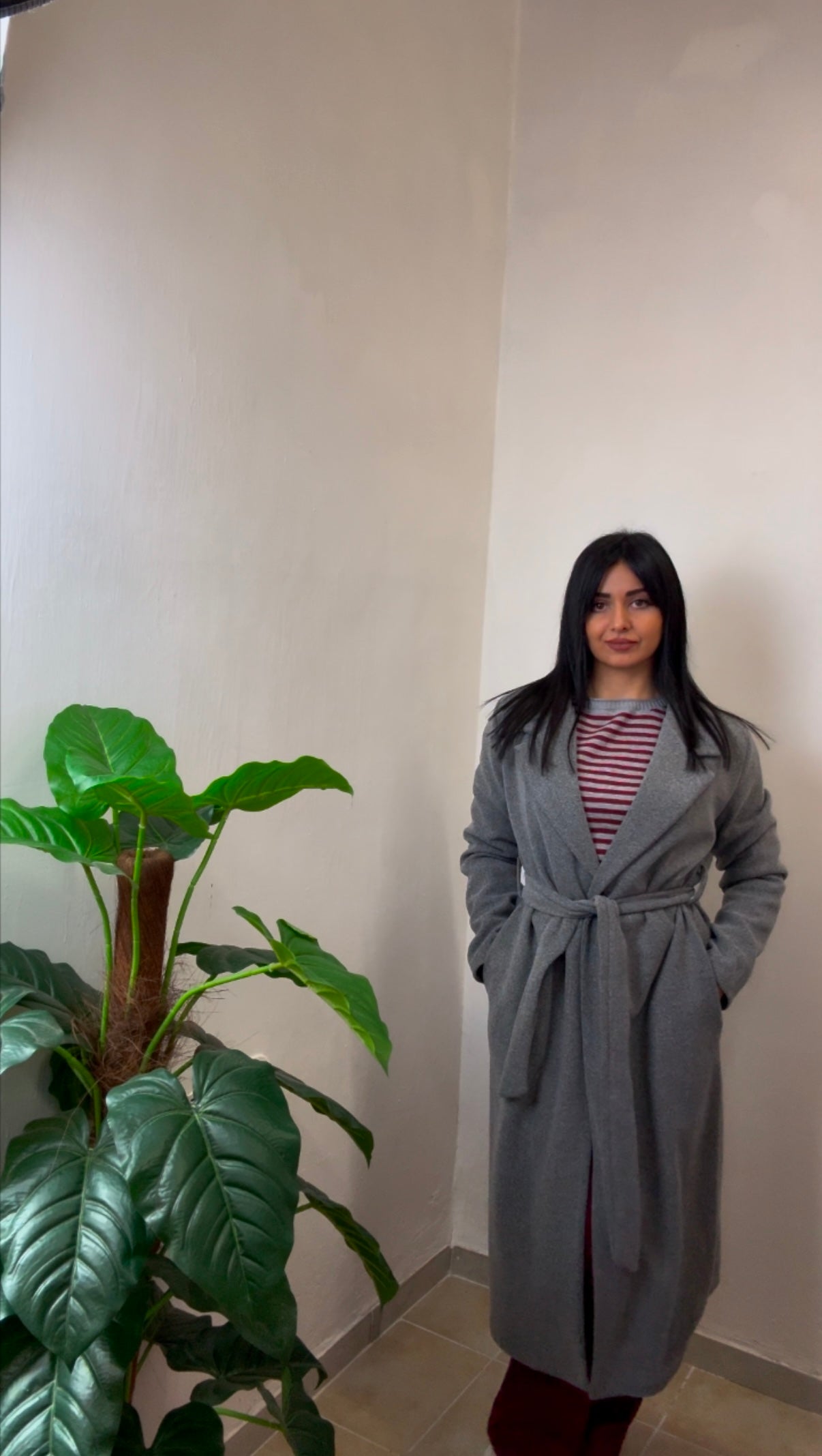 Cappotto grigio in taglia unica, dal taglio morbido e versatile. Realizzato in tessuto caldo e confortevole, è perfetto per la stagione fredda. La linea lunga slancia la figura, mentre il colore neutro permette abbinamenti facili con qualsiasi outfit, dal casual all’elegante.