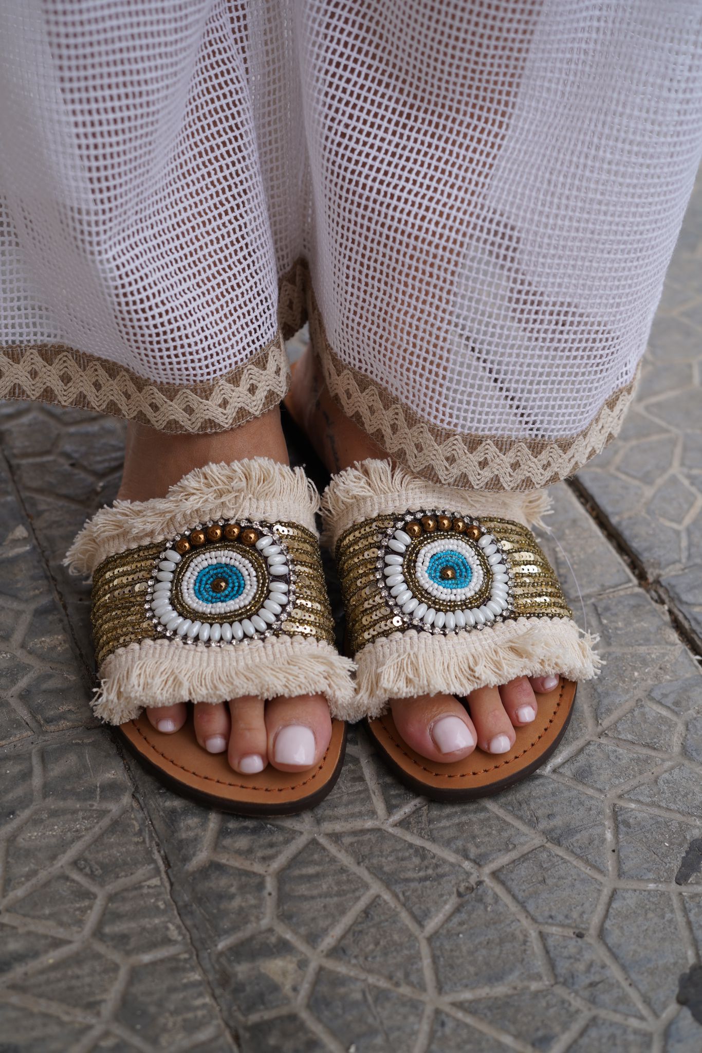 Ciabattina Santorini numero 37, disegnata in Grecia. Un modello leggero e raffinato, perfetto per accompagnare le tue giornate estive con stile e semplicità. Ispirata ai colori e alle atmosfere delle isole greche, è l’accessorio ideale per un look vacanziero chic.