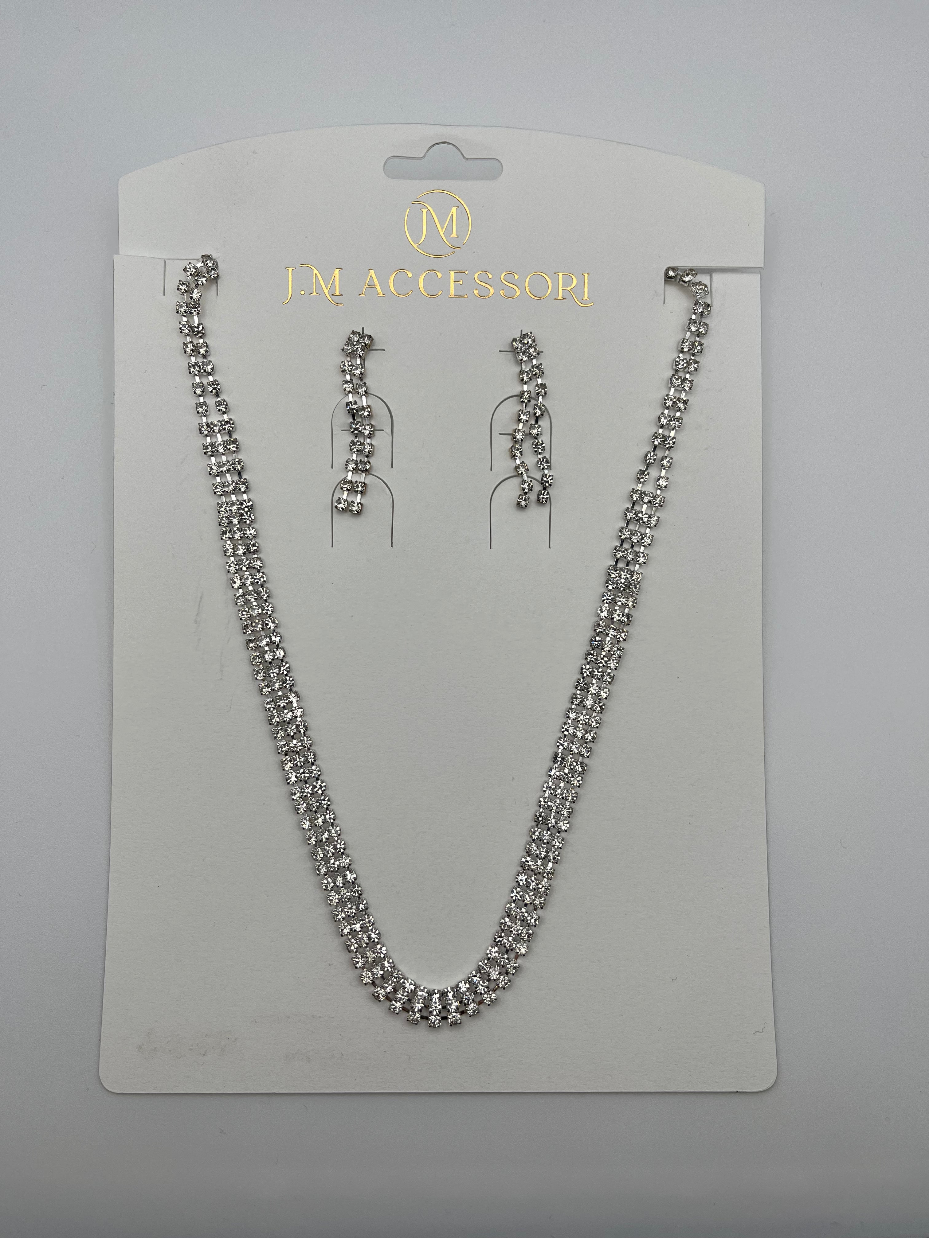 Completo Brillantezza in acciaio, con nichel nei limiti consentiti. Un set raffinato e scintillante composto da collana e orecchini, pensato per chi ama brillare con classe e discrezione.