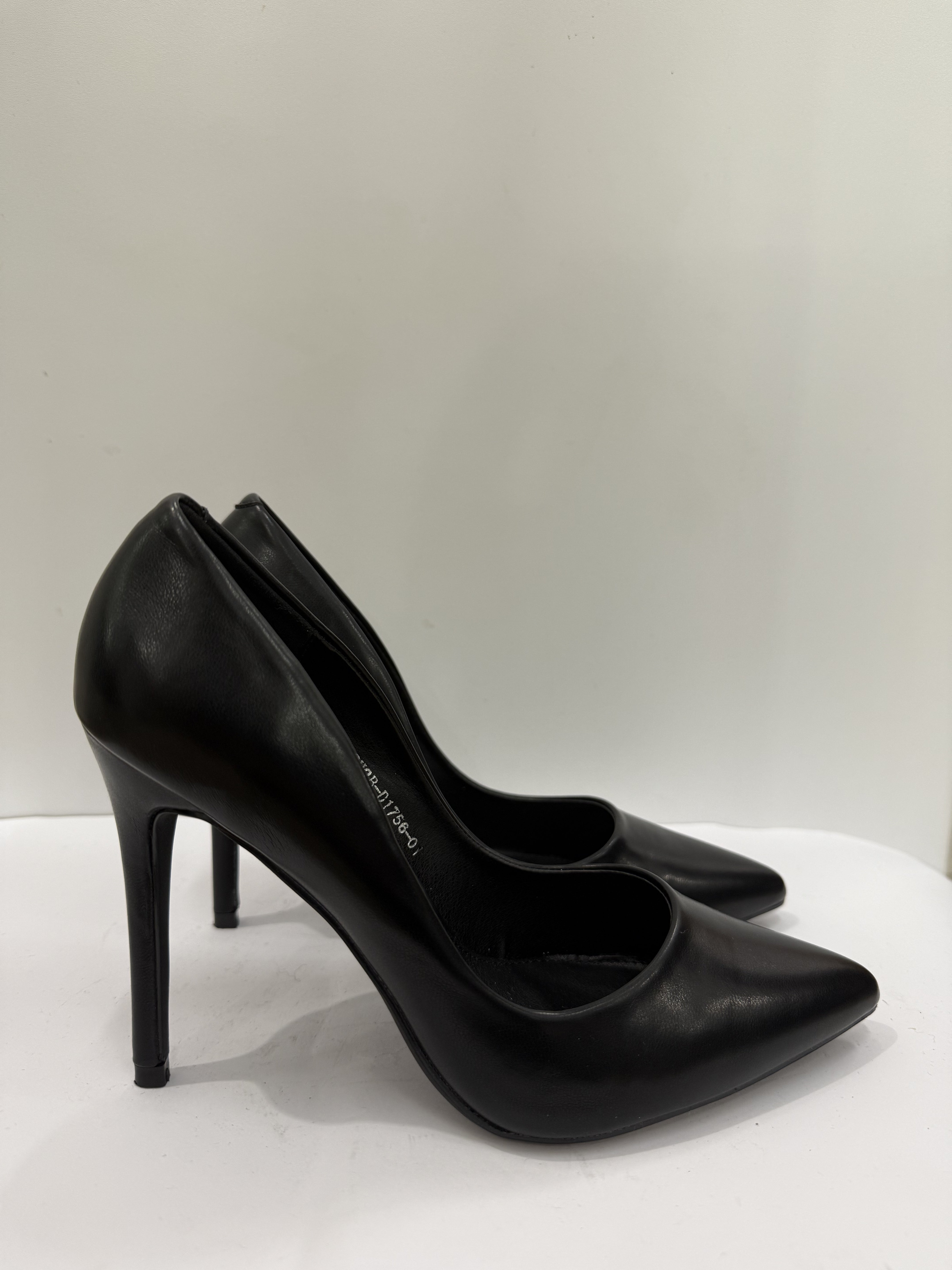 Décolleté nere in similpelle con tacco a spillo, perfette per ogni occasione.