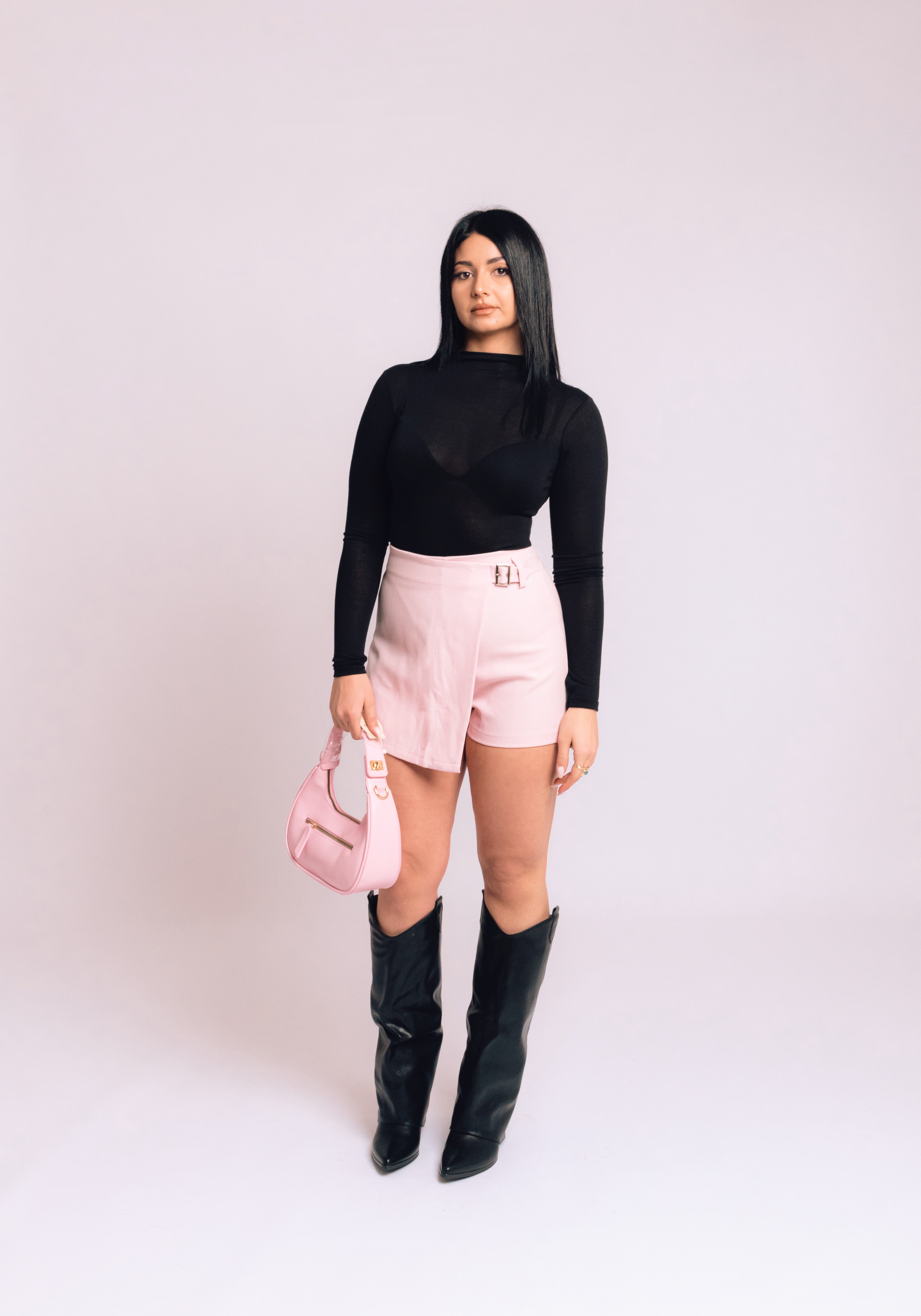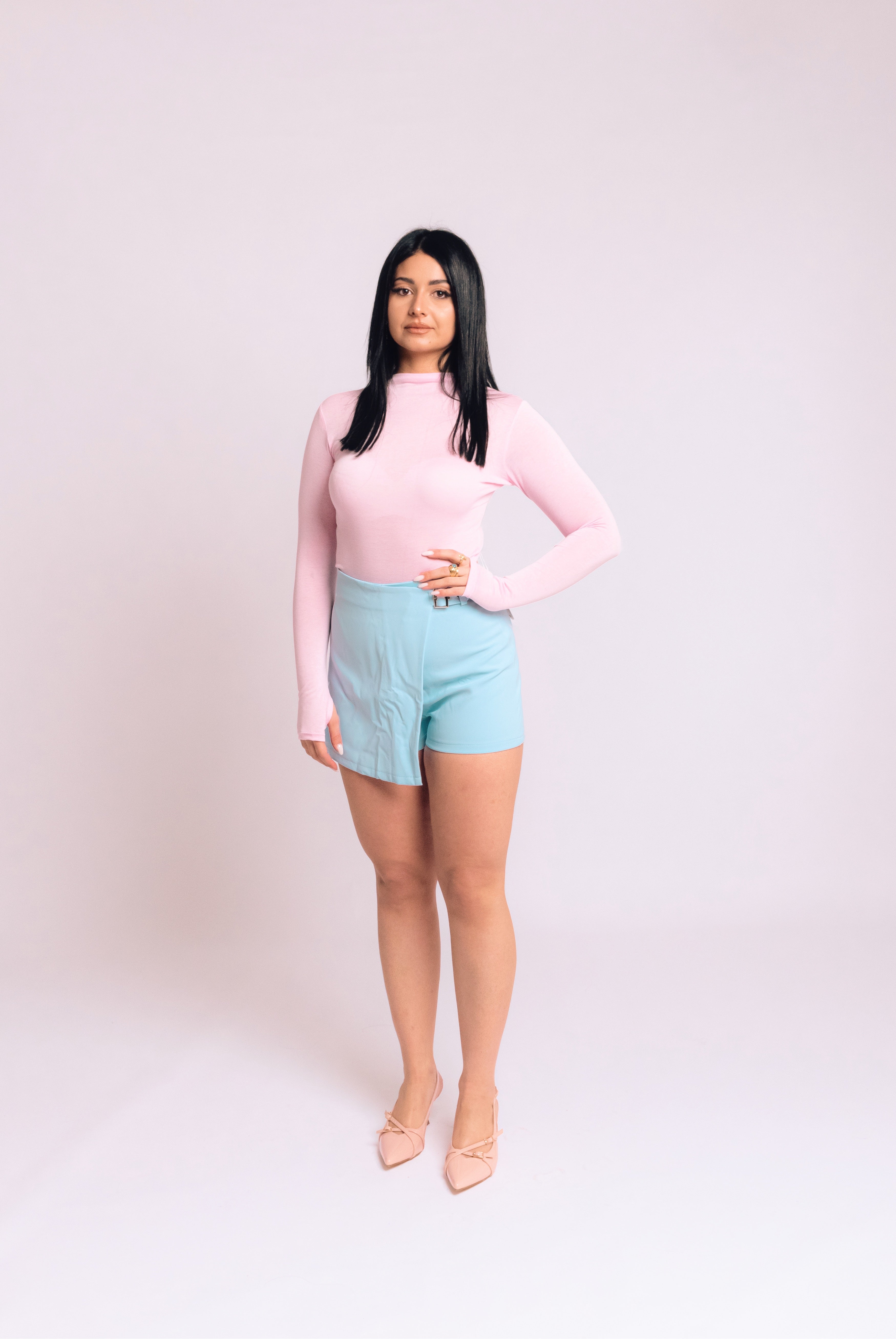 Gonna a pantaloncino disponibile in cammello, celeste, rosa e nero. Unisce l’eleganza di una gonna alla praticità di un pantaloncino, per un look sempre perfetto.