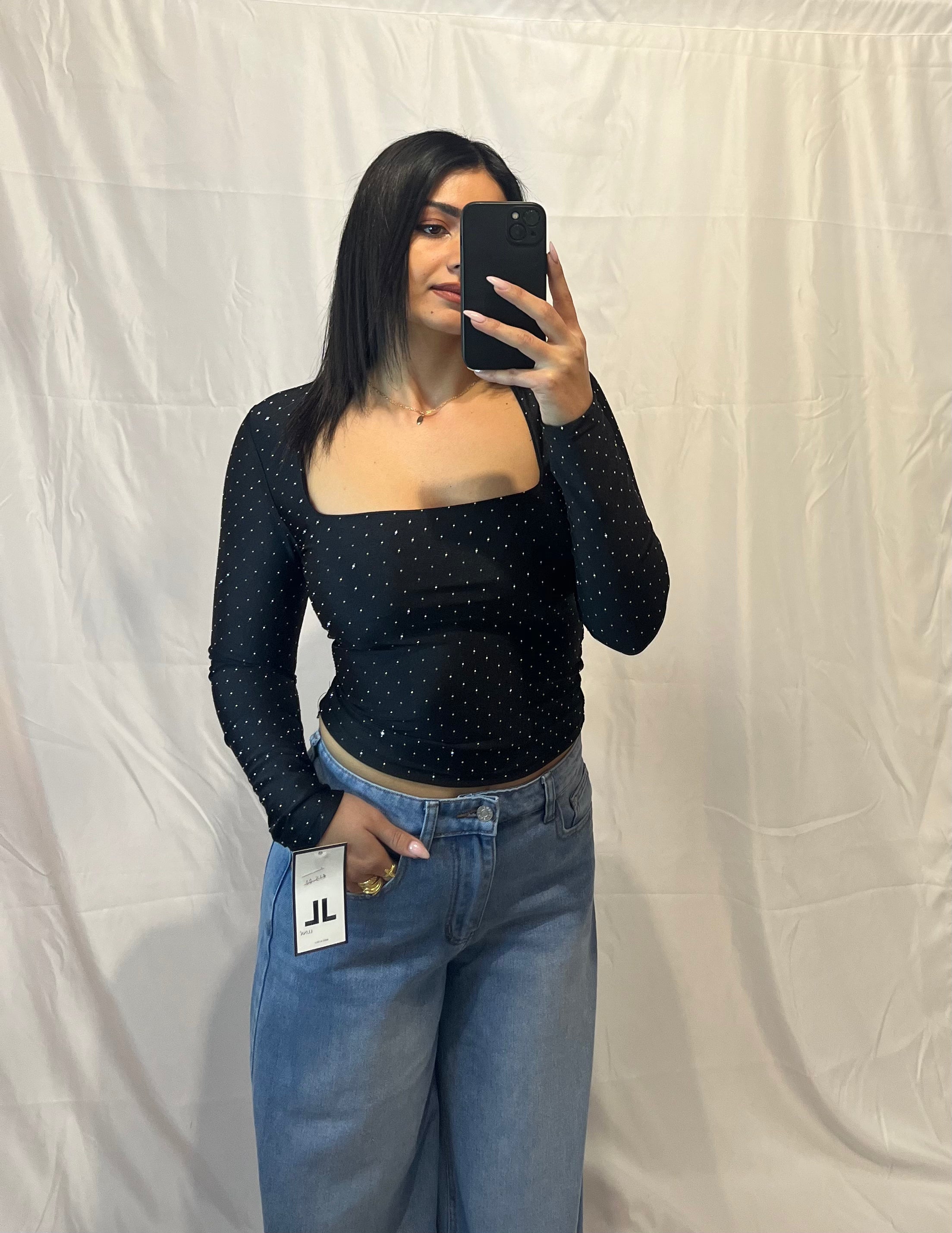 La Maglia Brillantini, in panna, nera e rossa, unisce eleganza e praticità.