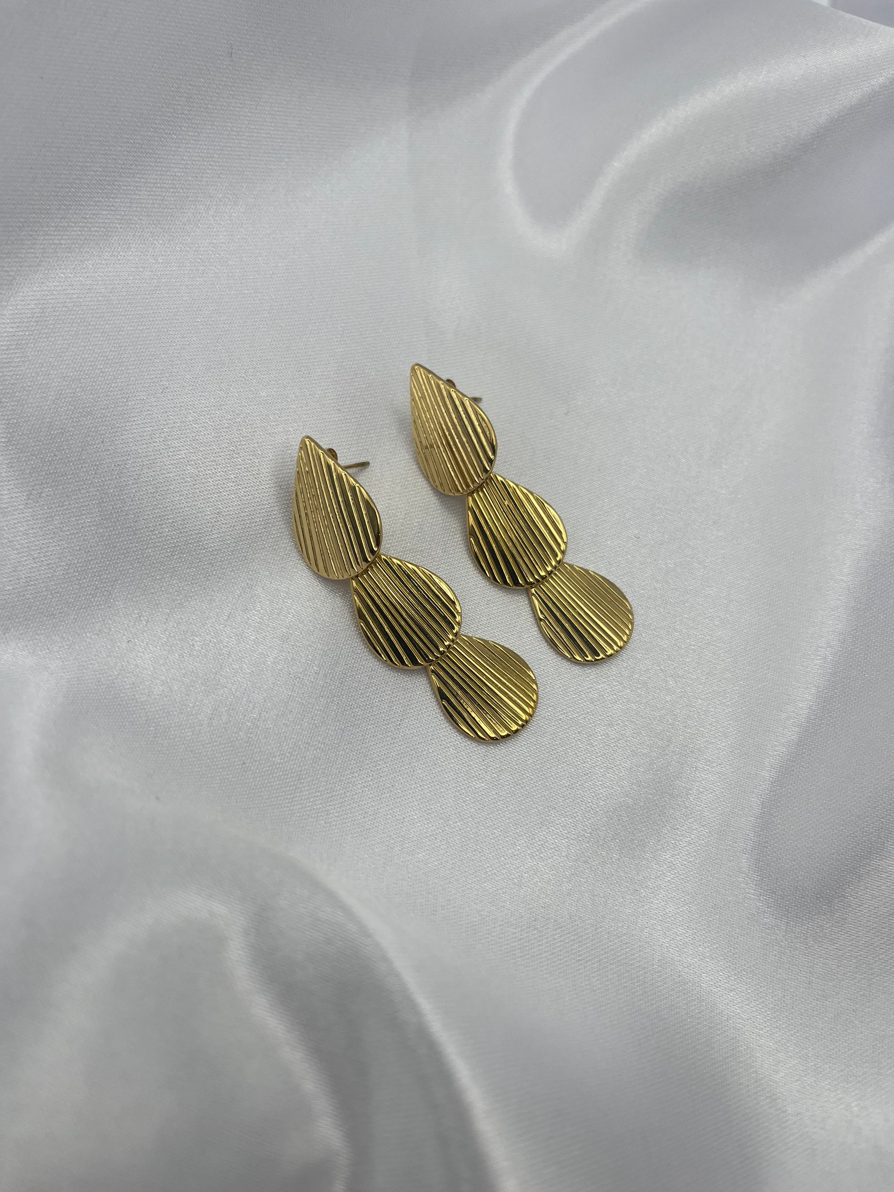 Orecchini Iris in acciaio, disponibili in finitura argento e dorata, con nichel nei limiti consentiti. Dal design elegante e contemporaneo, questi orecchini sono perfetti per aggiungere un tocco di luce e raffinatezza ad ogni look.
