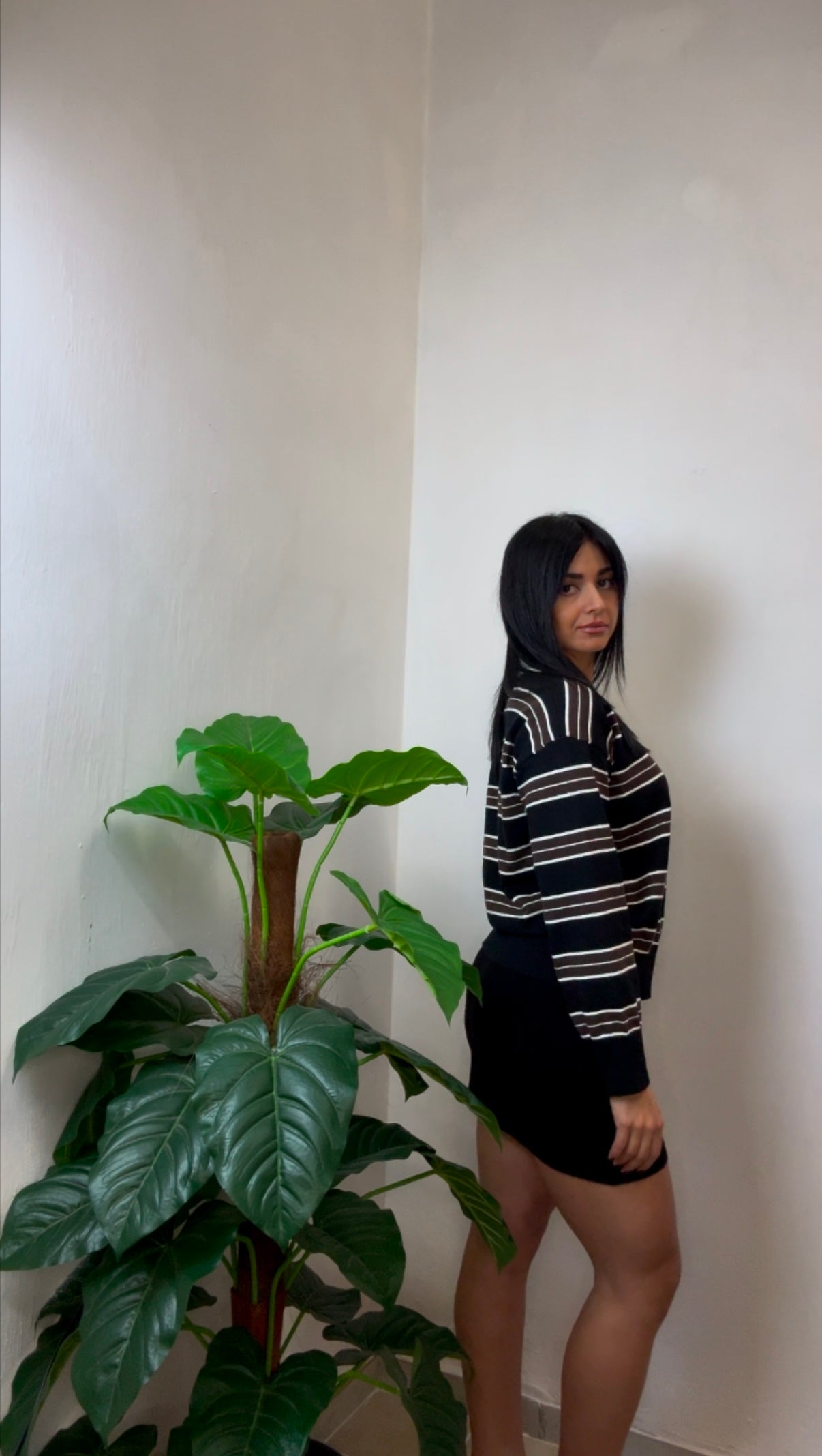 Polo a righe in maglia morbida, caratterizzata da un design casual e versatile. Presenta una vestibilità comoda grazie alla taglia unica, con colletto classico e chiusura a bottoni. Le righe orizzontali aggiungono un tocco moderno che la rende perfetta sia per outfit quotidiani sia per look più curati. Facile da abbinare a jeans, gonne o pantaloni eleganti.