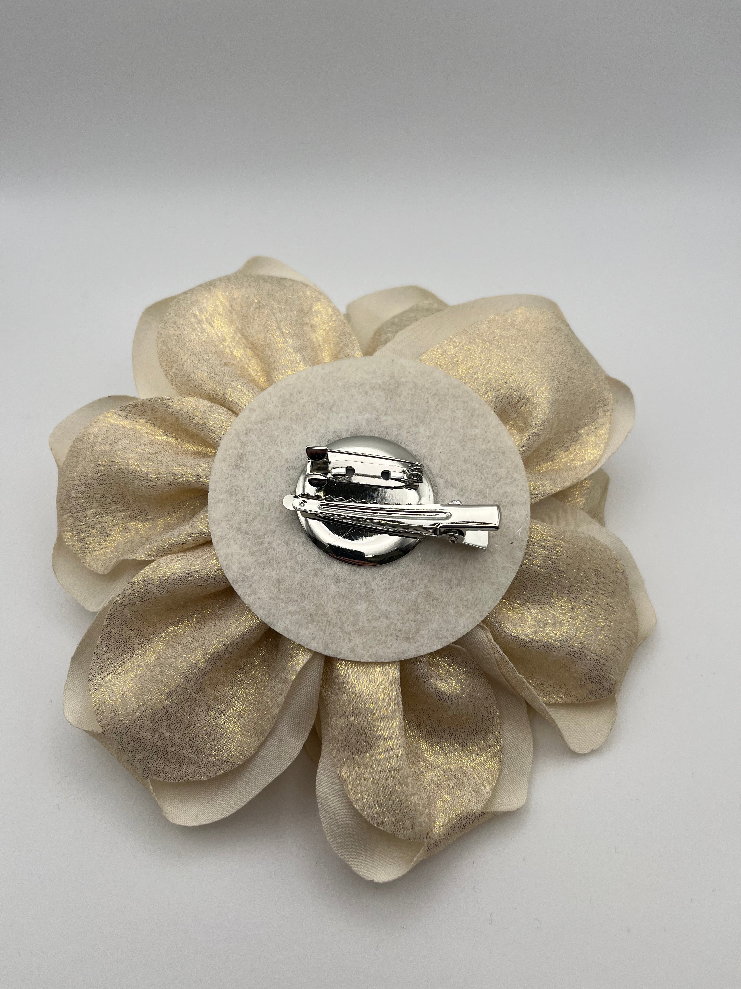 Questa spilla dorata aggiunge un tocco di lusso ai tuoi outfit.