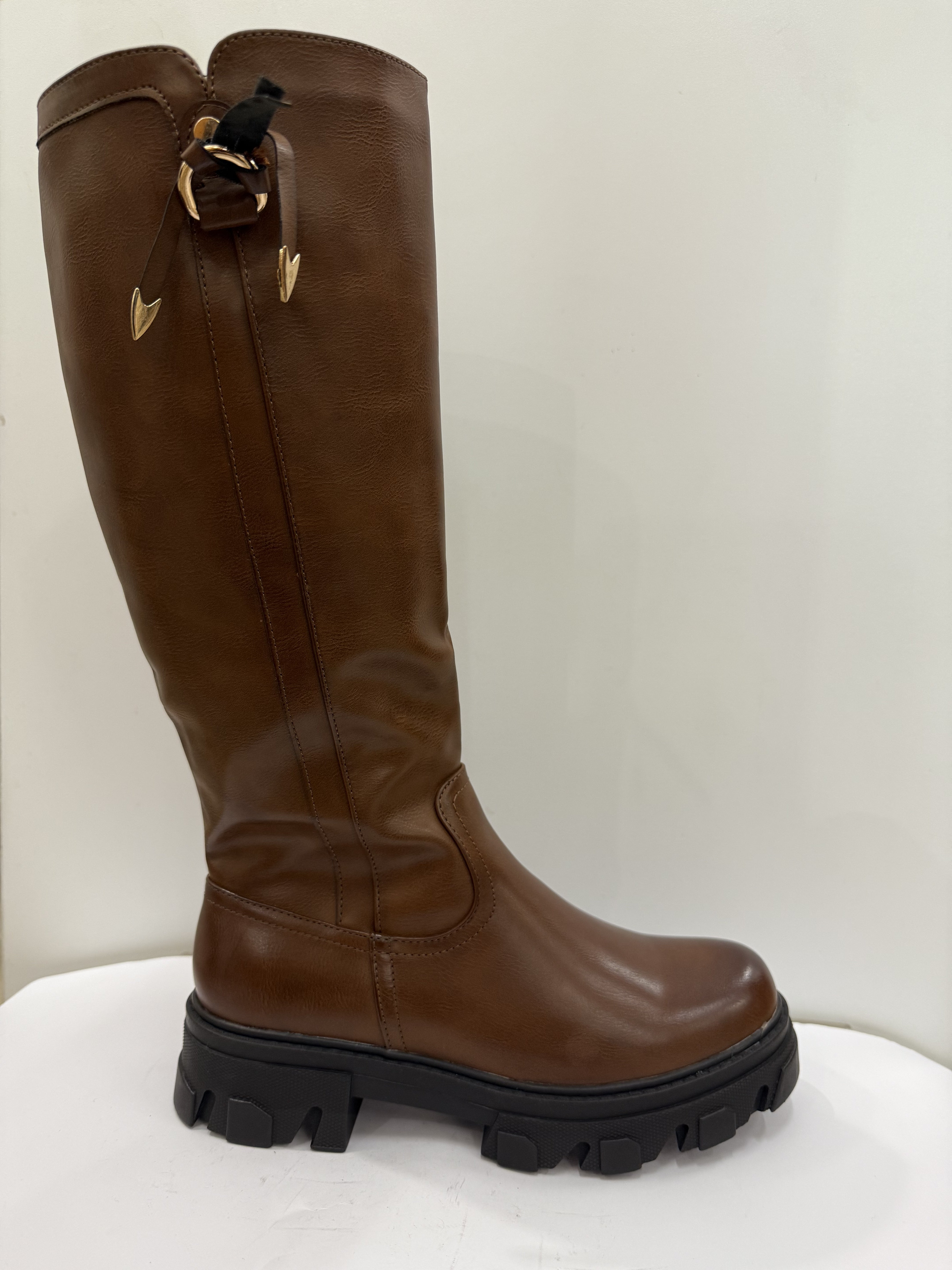 Stivale marrone in similpelle, perfetto per ogni stagione. Disponibile nelle taglie 39, 40 e 41, questo stivale unisce eleganza e praticità, ideale per completare un look casual o più sofisticato.
