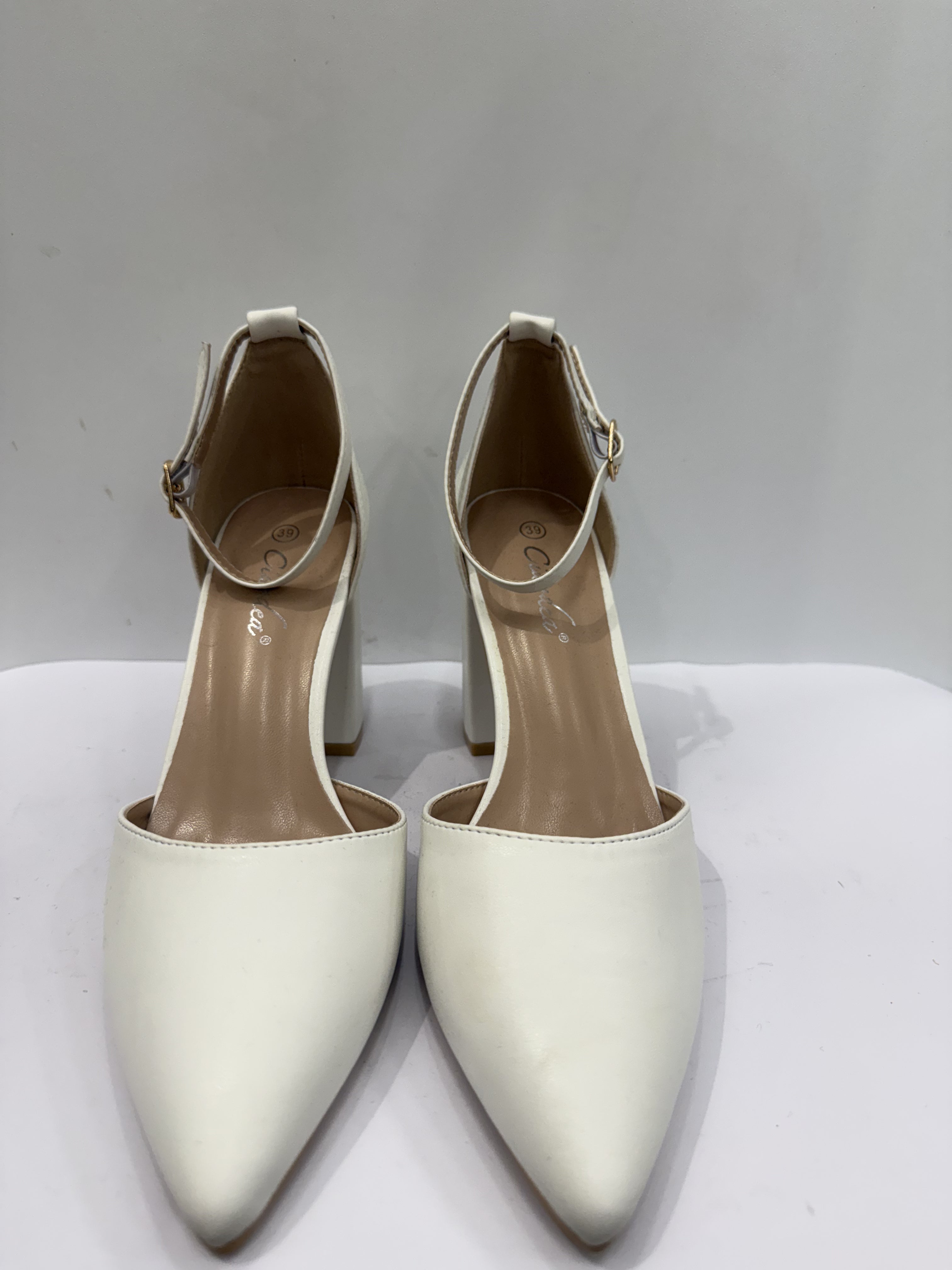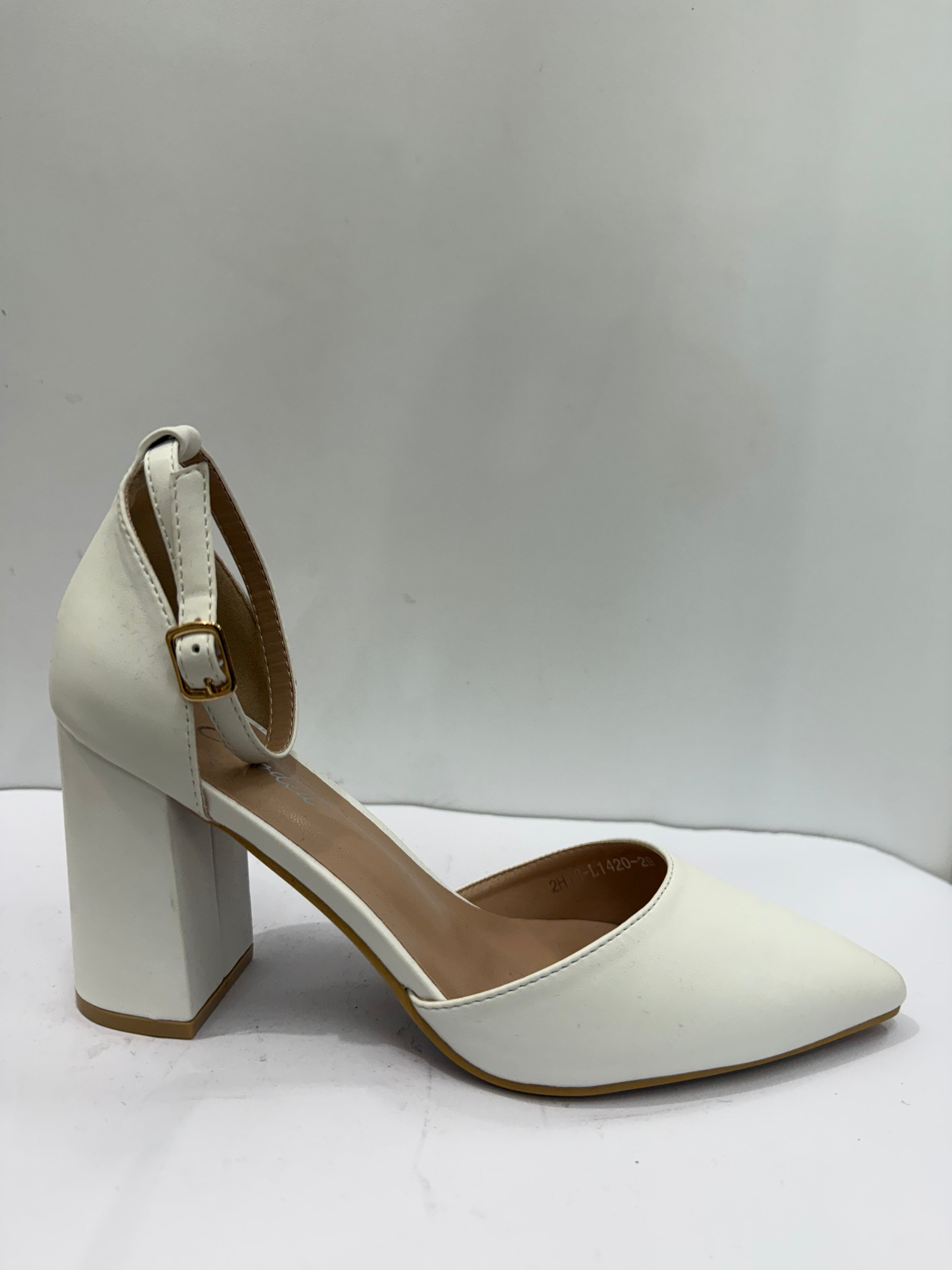 Tacco alto con cinturino bianco in similpelle, un accessorio chic che aggiunge luminosità e stile al tuo look. Disponibile nelle taglie 37, 39 e 41, ideale per chi cerca eleganza e comfort in un design sofisticato.