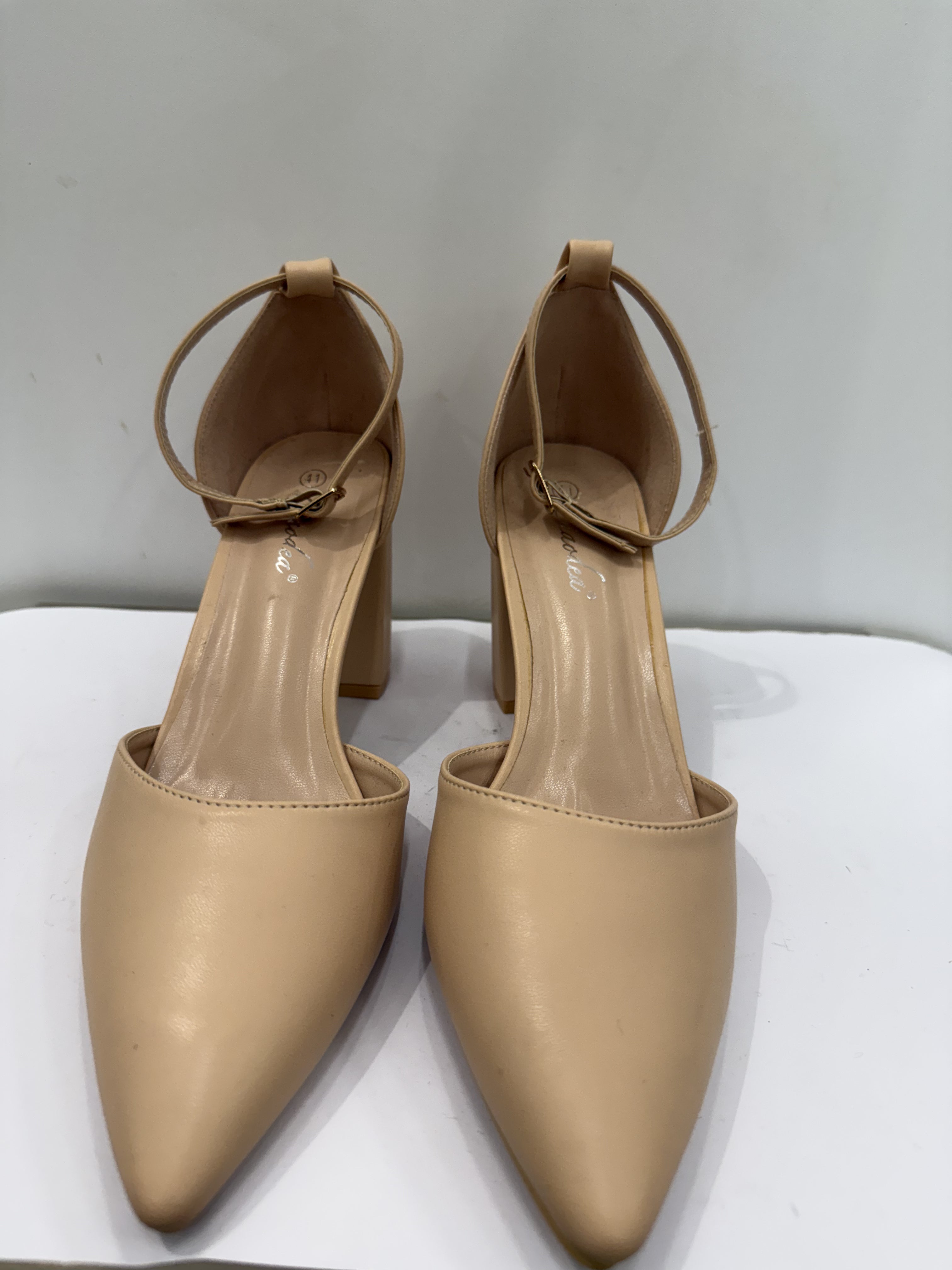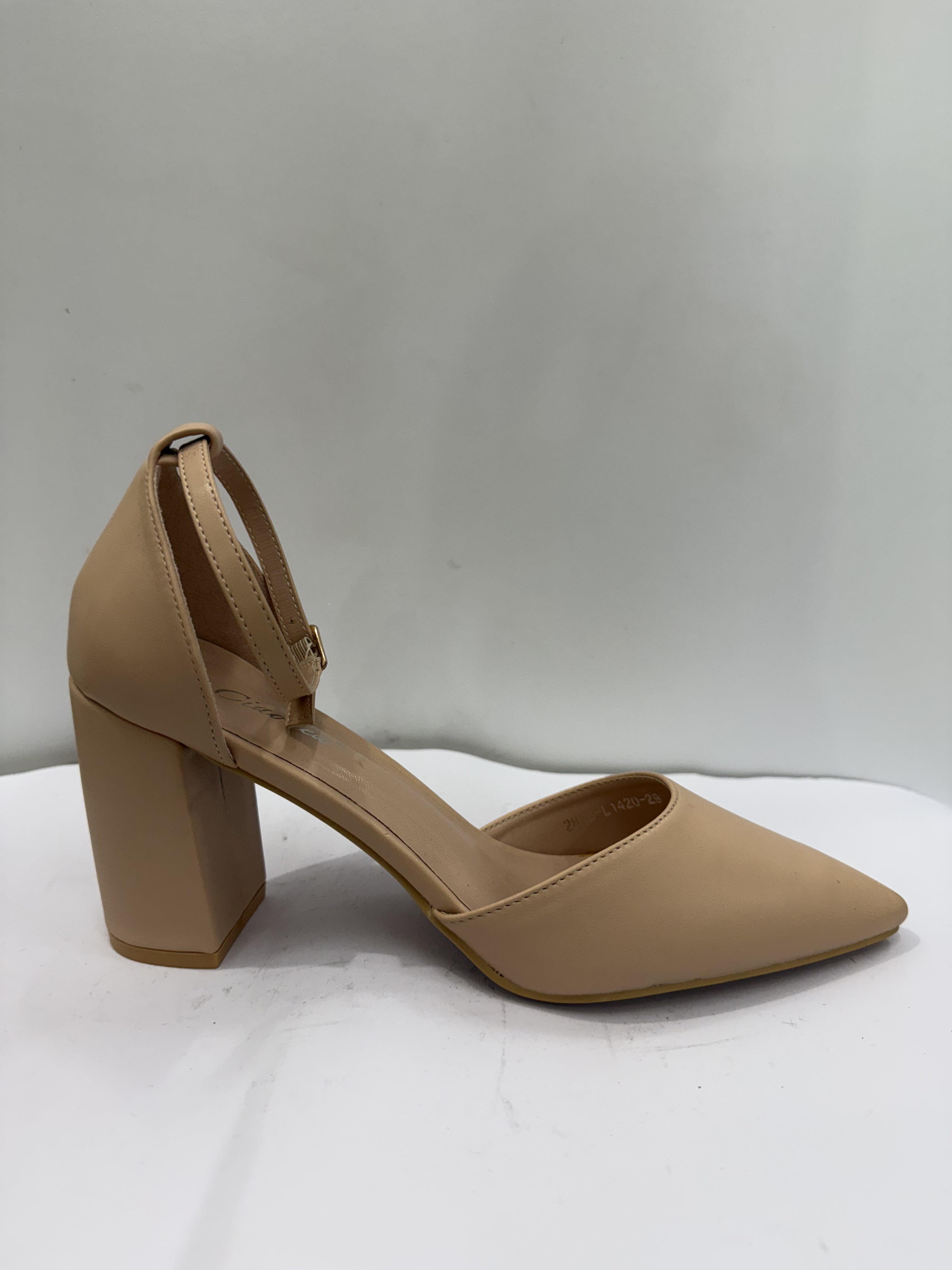 Tacco alto con cinturino in similpelle nude, disponibile nel numero 41. Un modello femminile e versatile, pensato per slanciare la figura con classe e discrezione.