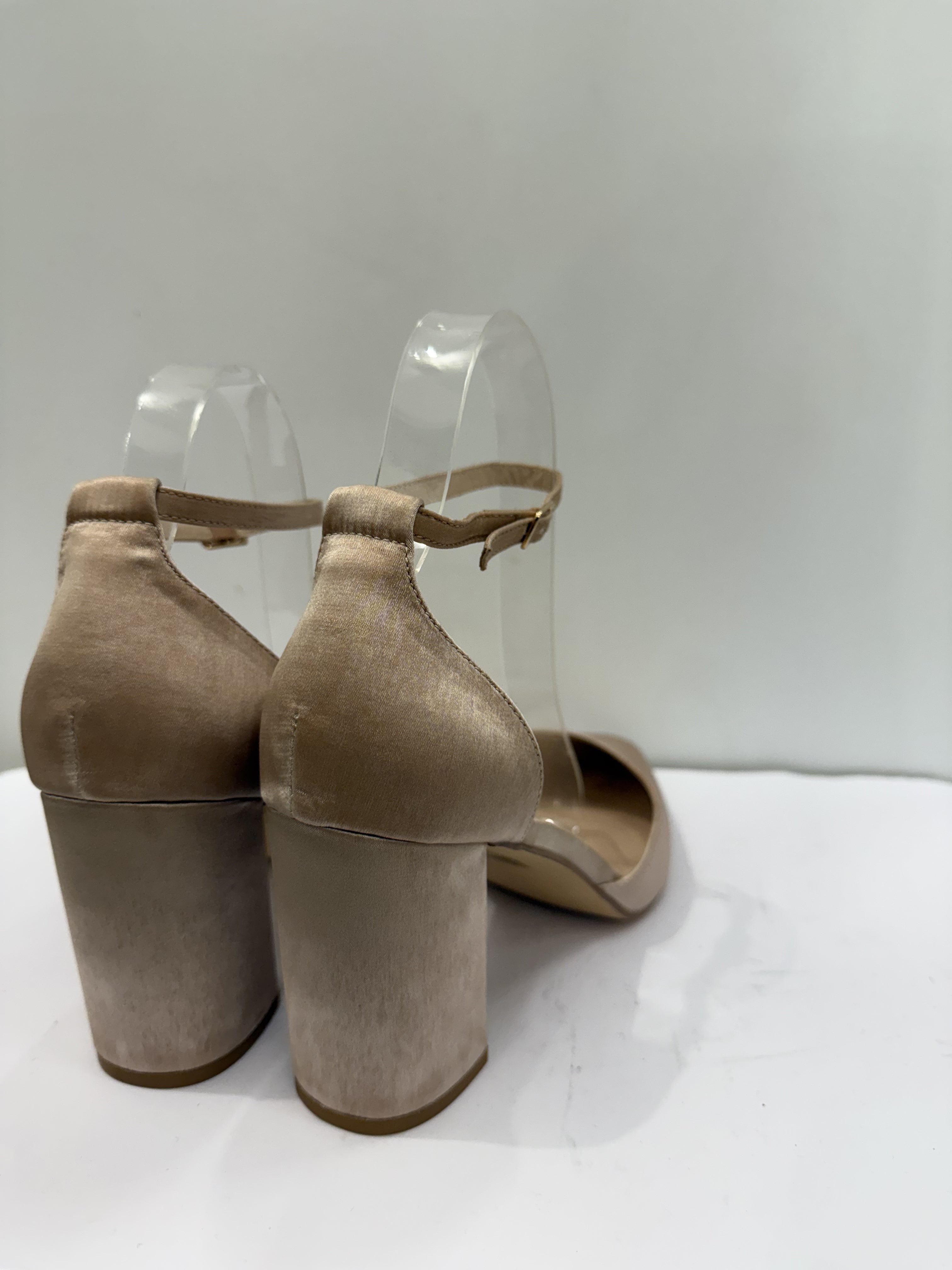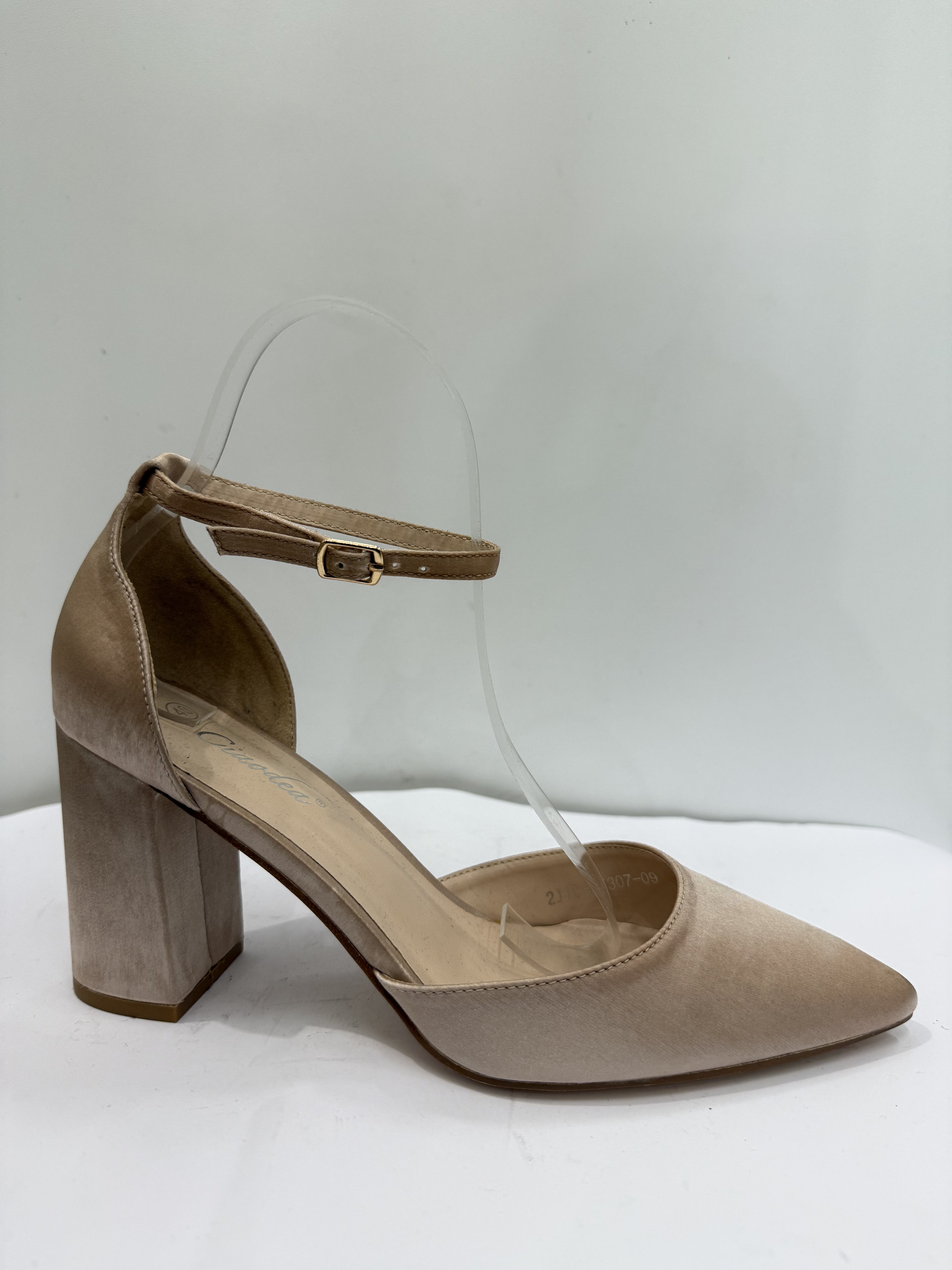 Tacco con cinturino cipria in raso, perfetto per aggiungere un tocco di classe e sofisticatezza al tuo look. Disponibile nella taglia 40, un accessorio elegante che combina il fascino del raso con un design raffinato.