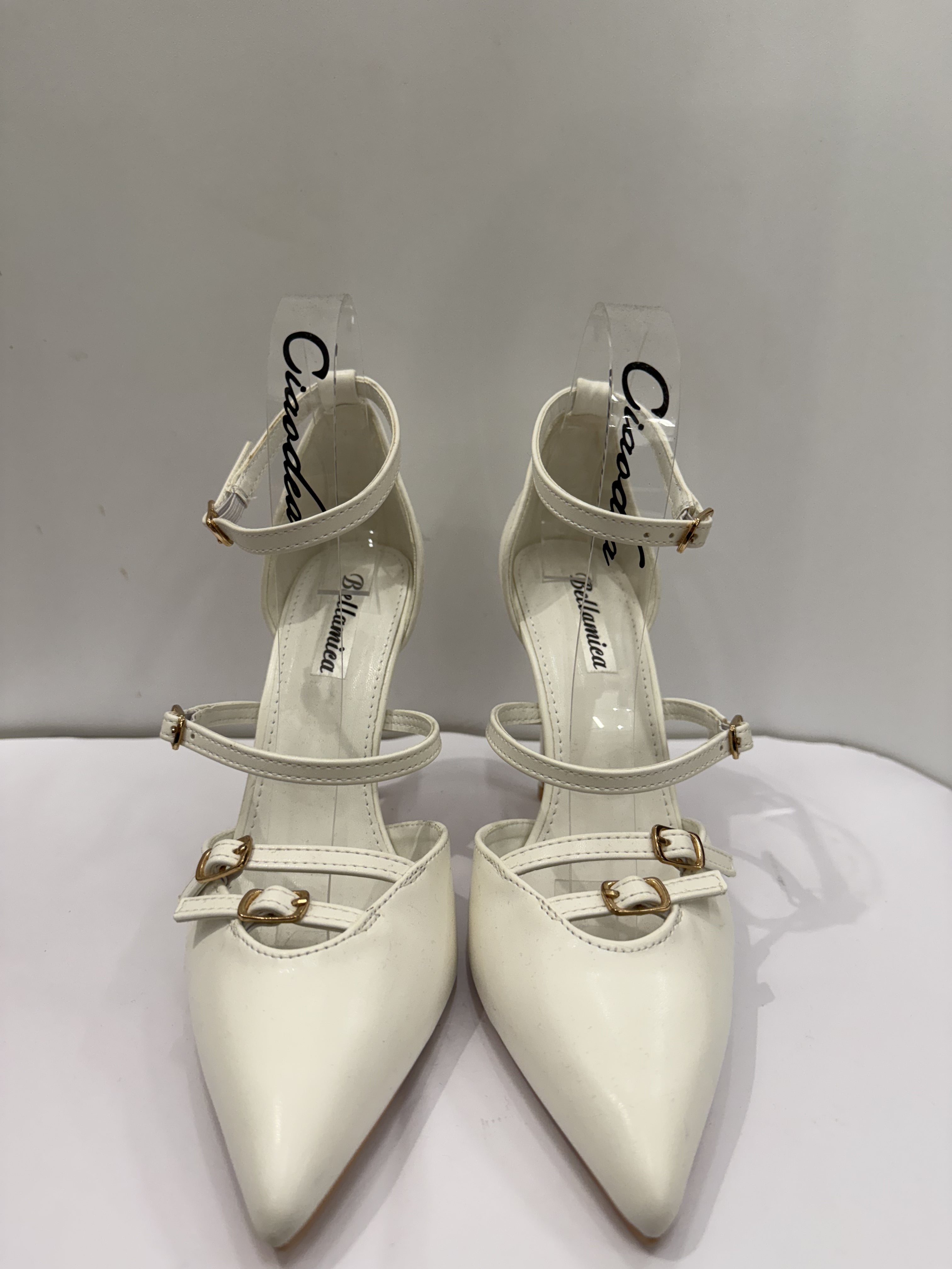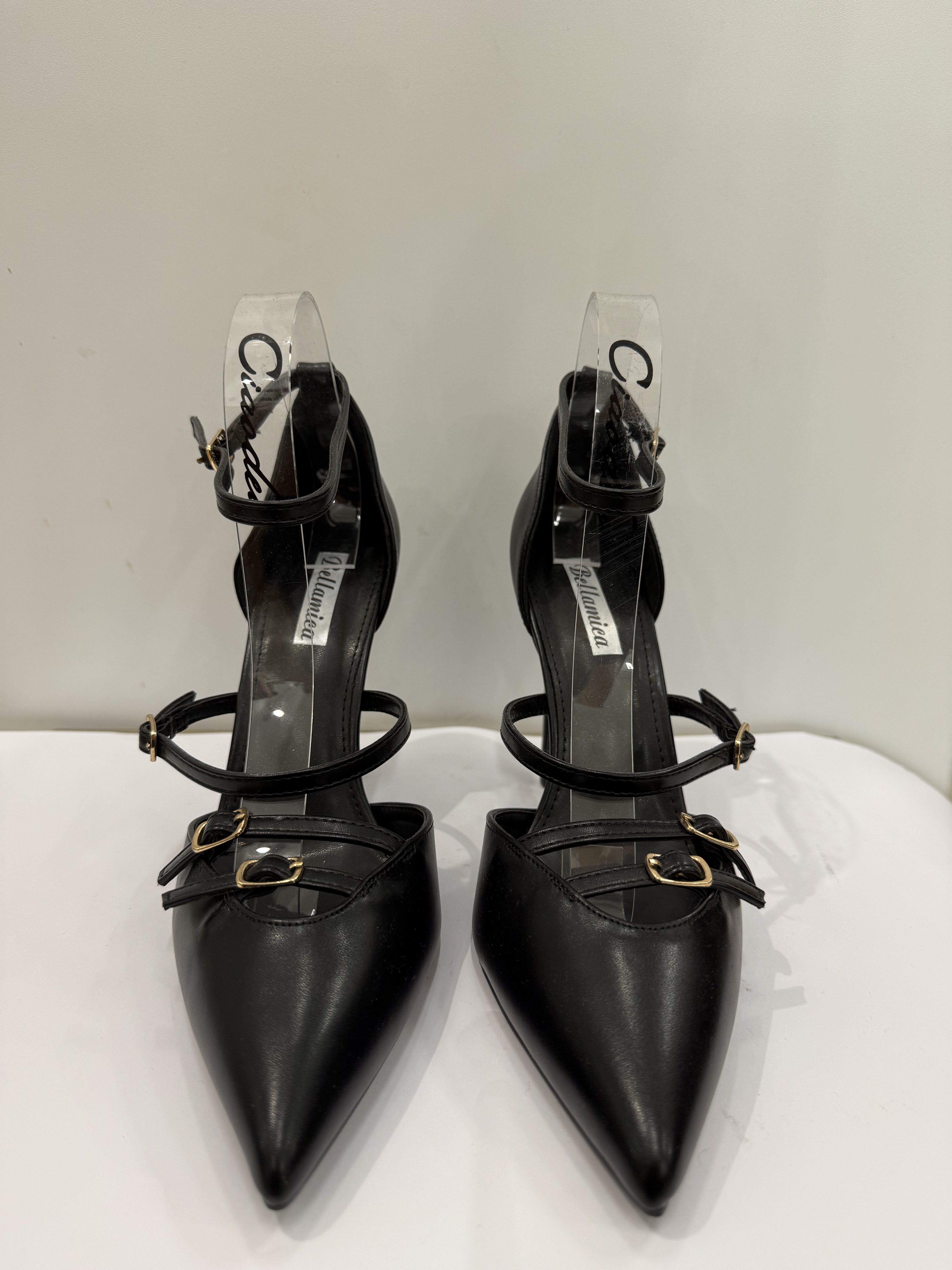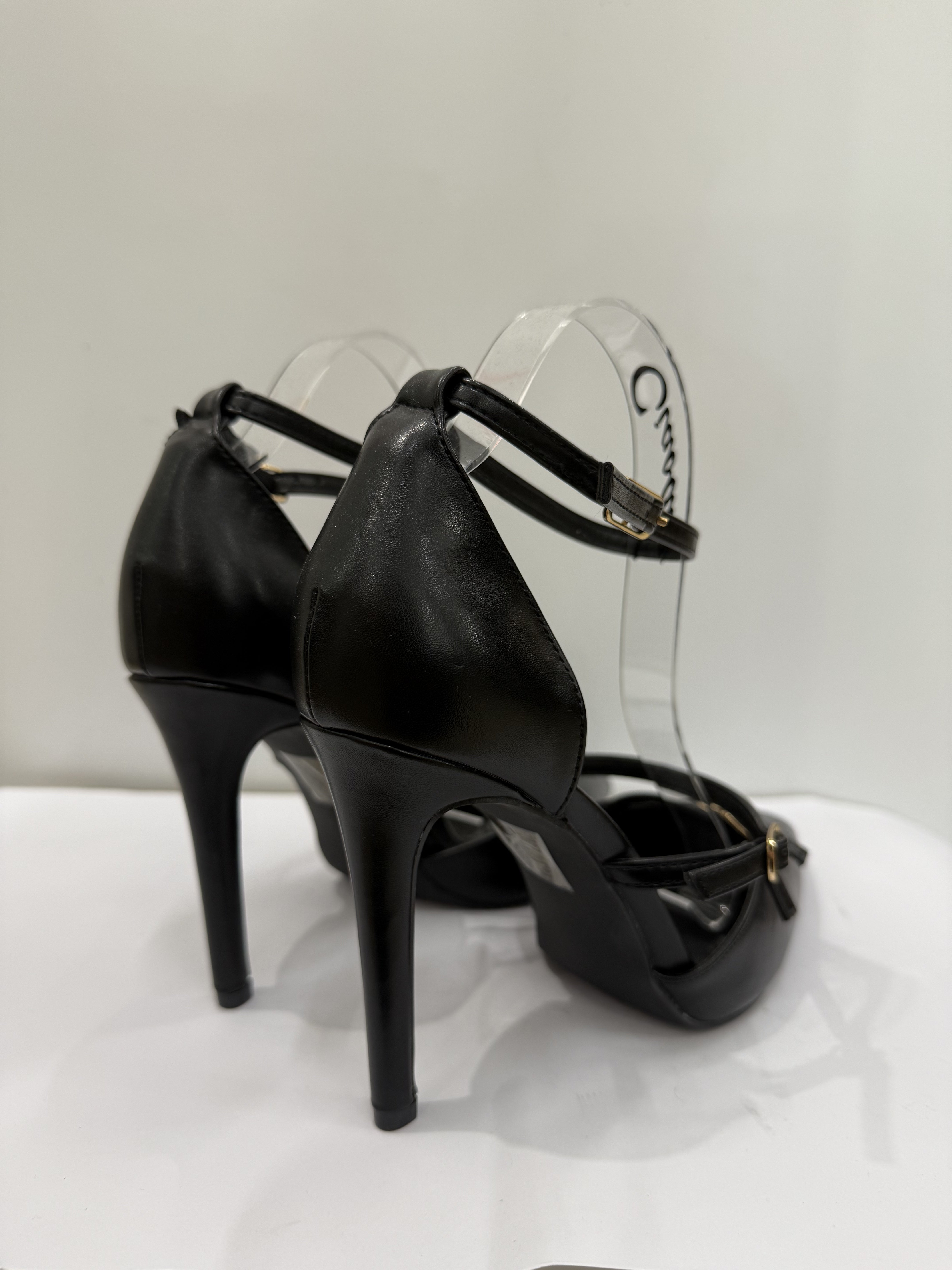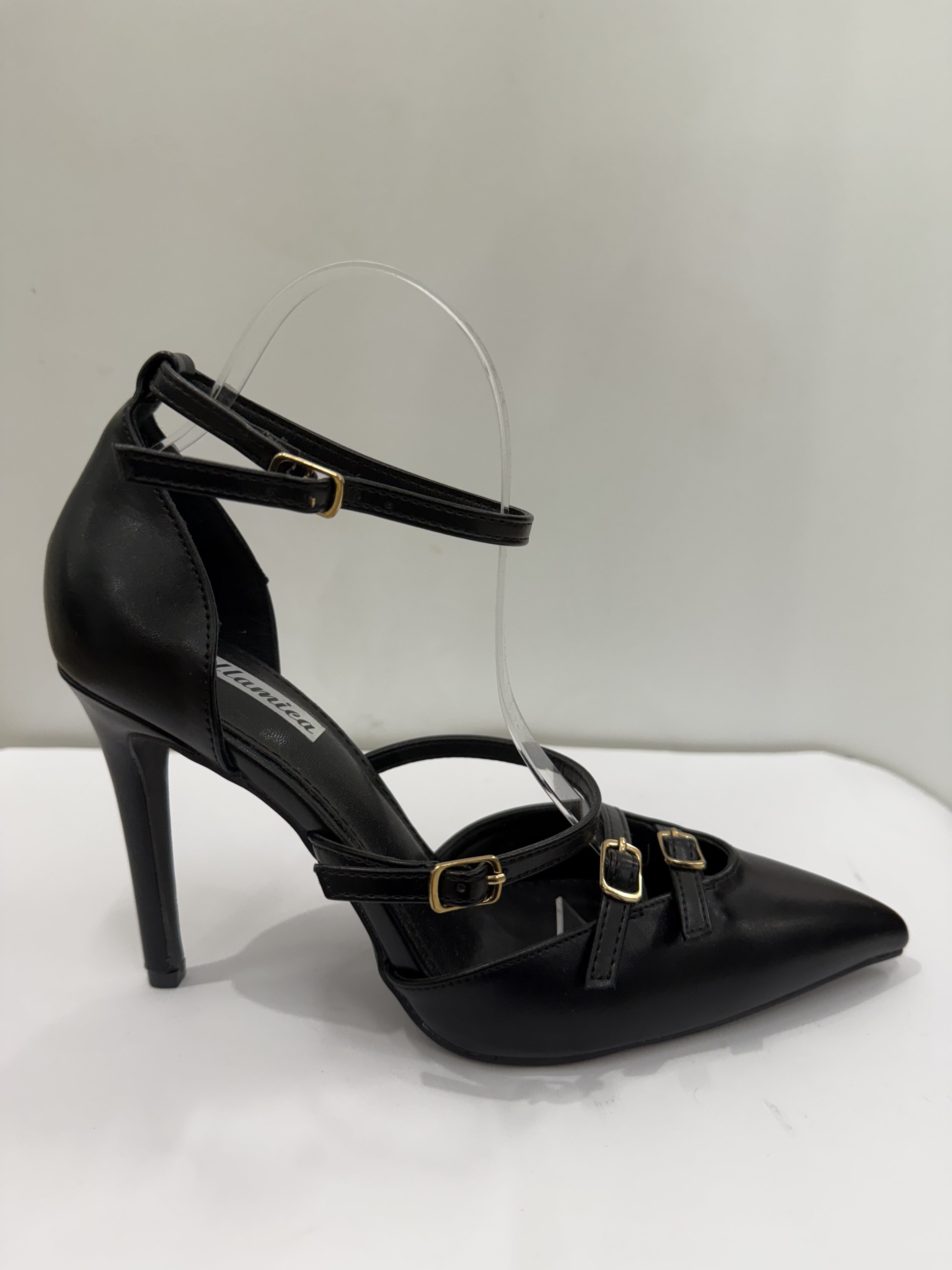 Realizzato in similpelle, con tacco slanciato e dettagli dorati che donano carattere e raffinatezza. Ideale per cerimonie, eventi serali o look glamour da tutti i giorni.