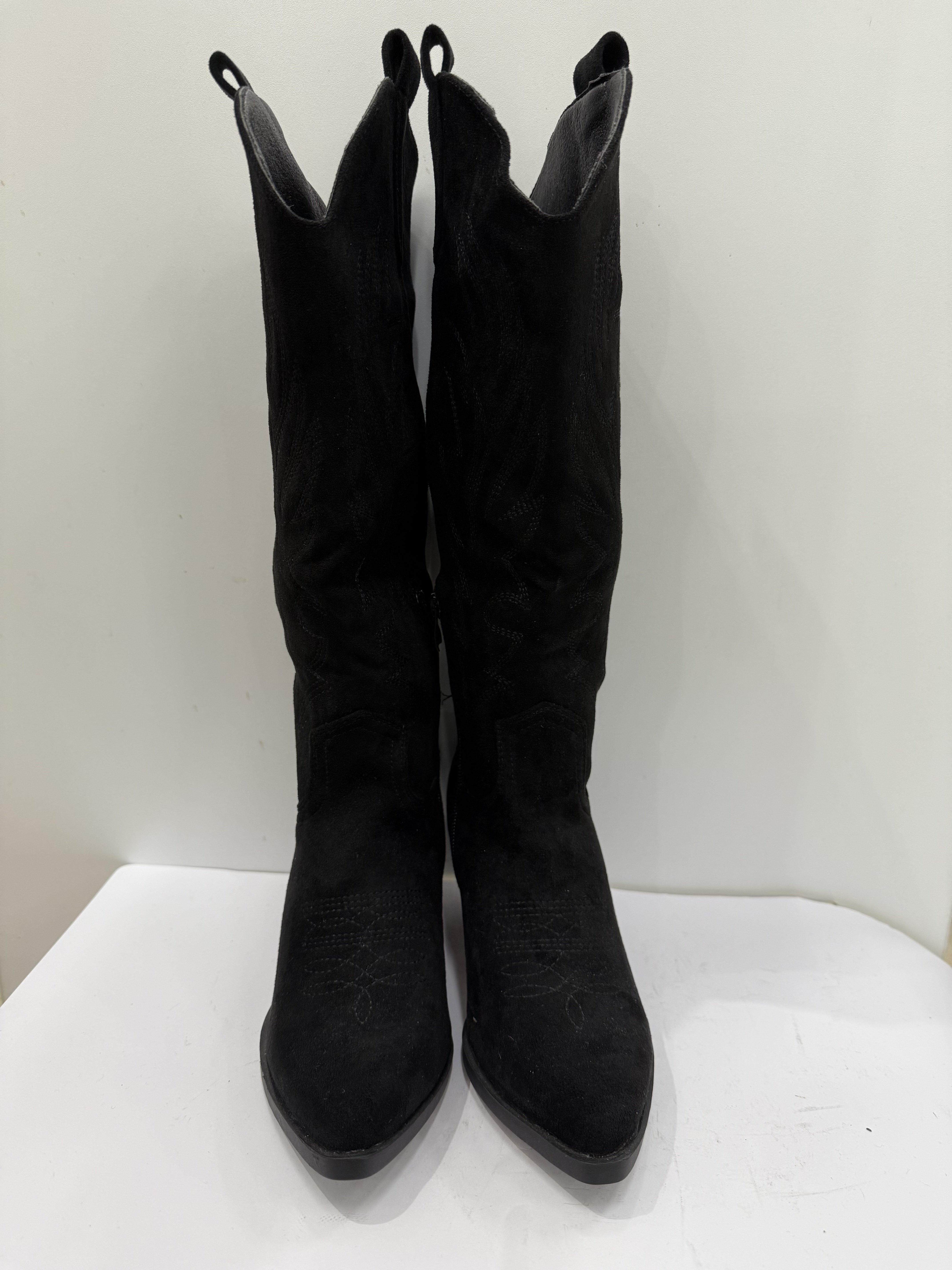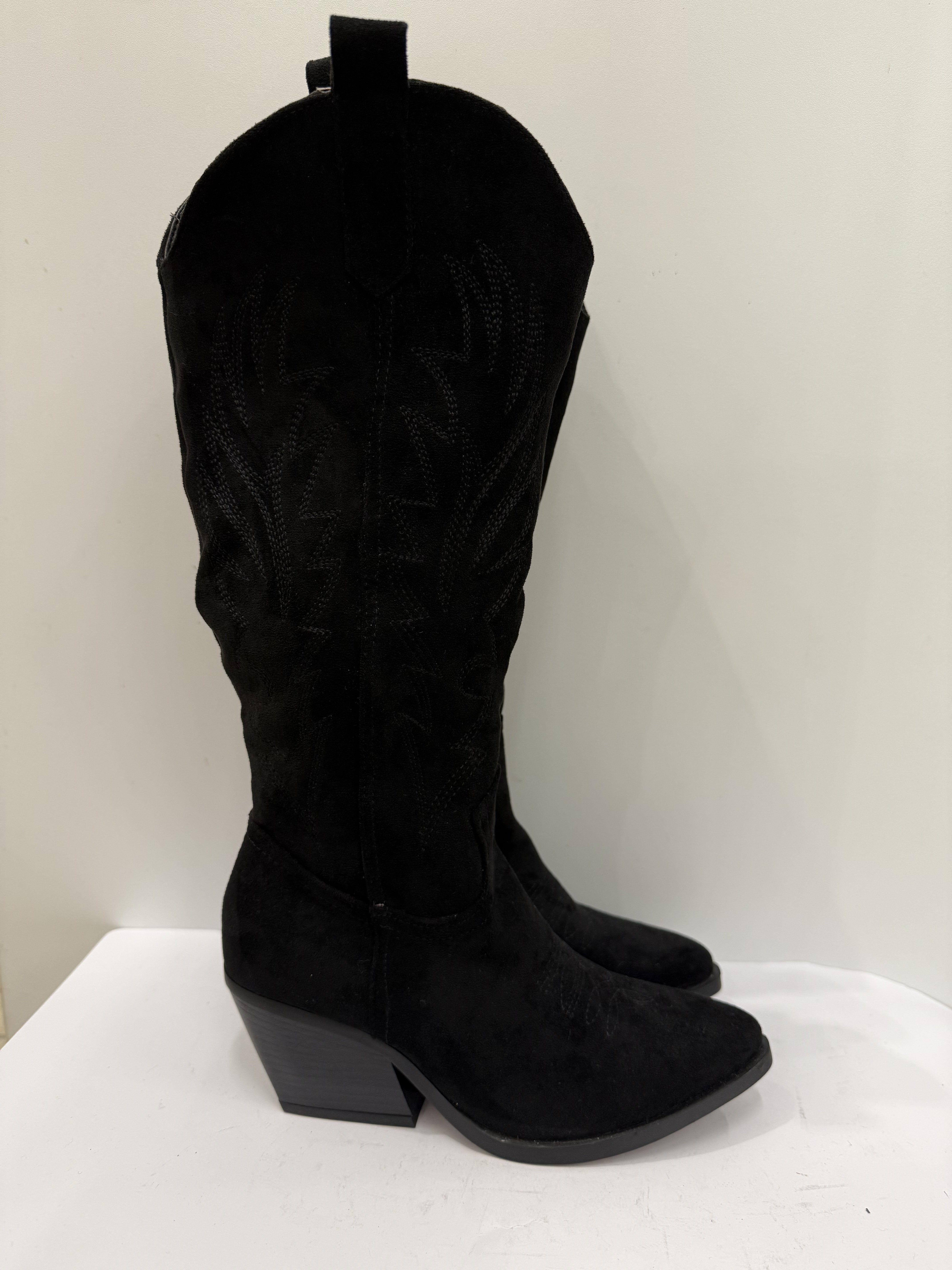 Texano in camoscio nero, disponibile nel numero 36. Un modello iconico rivisitato in chiave raffinata, perfetto per unire grinta e morbidezza con stile.