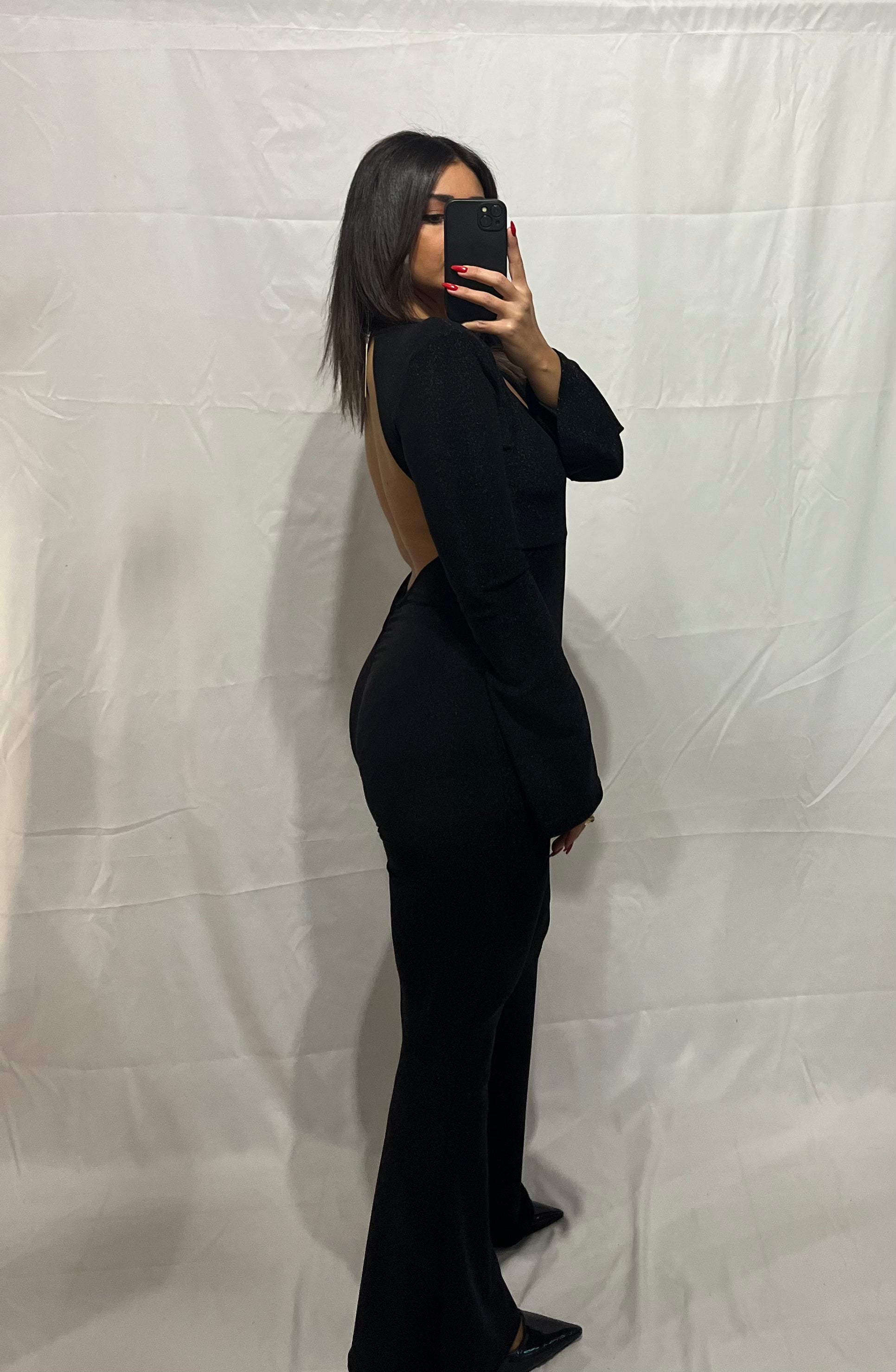 La Tuta Rita nera in lurex è perfetta per chi ama osare con stile.